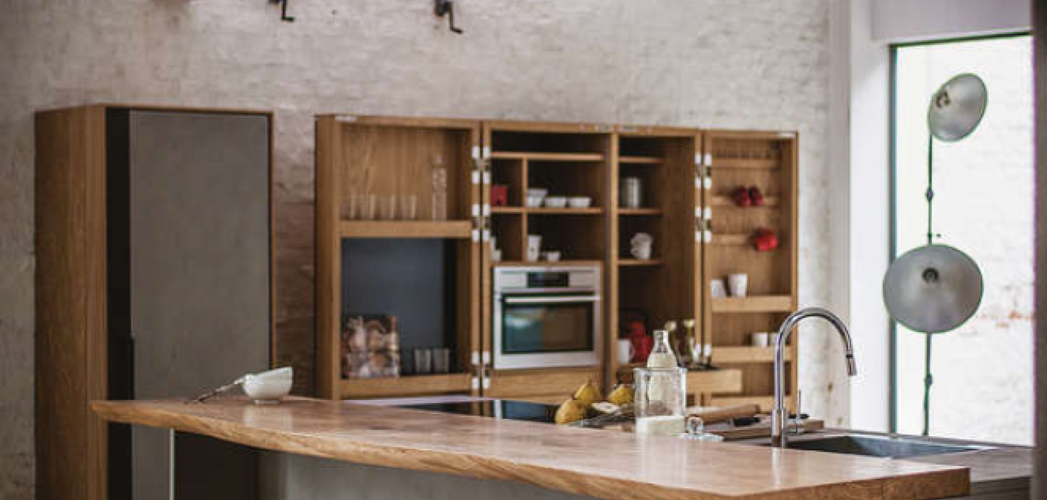 «Viele Schreiner haben wohl recht grossen Respekt vor der Arbeit mit Massivholz. Dieses kann sich verziehen und es arbeitet, wodurch nicht wenige Kollegen ihren Kunden zu Plattenwerkstoffen raten», sagt Lindauer. Er hat das Problem des Arbeitens von freien Flächen durch leimfreie Breitenverbindungsprofile gelöst, was der Schreinerei auch ein Alleinstellungsmerkmal eingebracht hat. «Zu mir kamen schon Kunden, die keinen Schreiner gefunden haben, der ihnen eine Massivholzküche machte. Denen wurde regelrecht davon abgeraten. Früher hat man Rahmen mit Füllungen gemacht, die möchte man heute aber meist nicht mehr, sondern grosse plane Flächen. Dann ist es natürlich für viele einfacher zu furnieren. Bei uns haben die Massivholzarbeiten mit den leimfreien Breitenverbindungen einen recht grossen Anteil», so Lindauer. Wildi würde am liebsten nur noch mit Massivholz arbeiten. Da im Moment vor allem die Eiche gefragt ist, hat er aber auch Schwierigkeiten, «ruhiges» Holz zu bekommen. «Nicht selten wird zu frisches Holz bei Bestellung noch schnell in die Trockenkammer gefahren und dann auf die Gebrauchsfeuchte heruntergetrocknet», sagt Wildi. Das sorgt in der Verarbeitung dann meist für Probleme, weil es sich wirft.