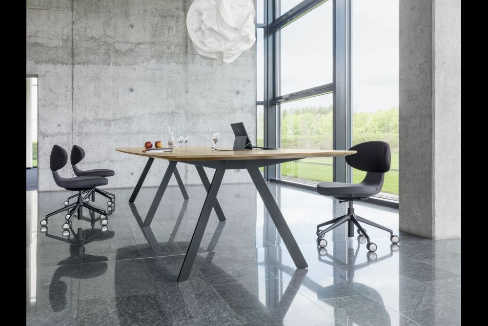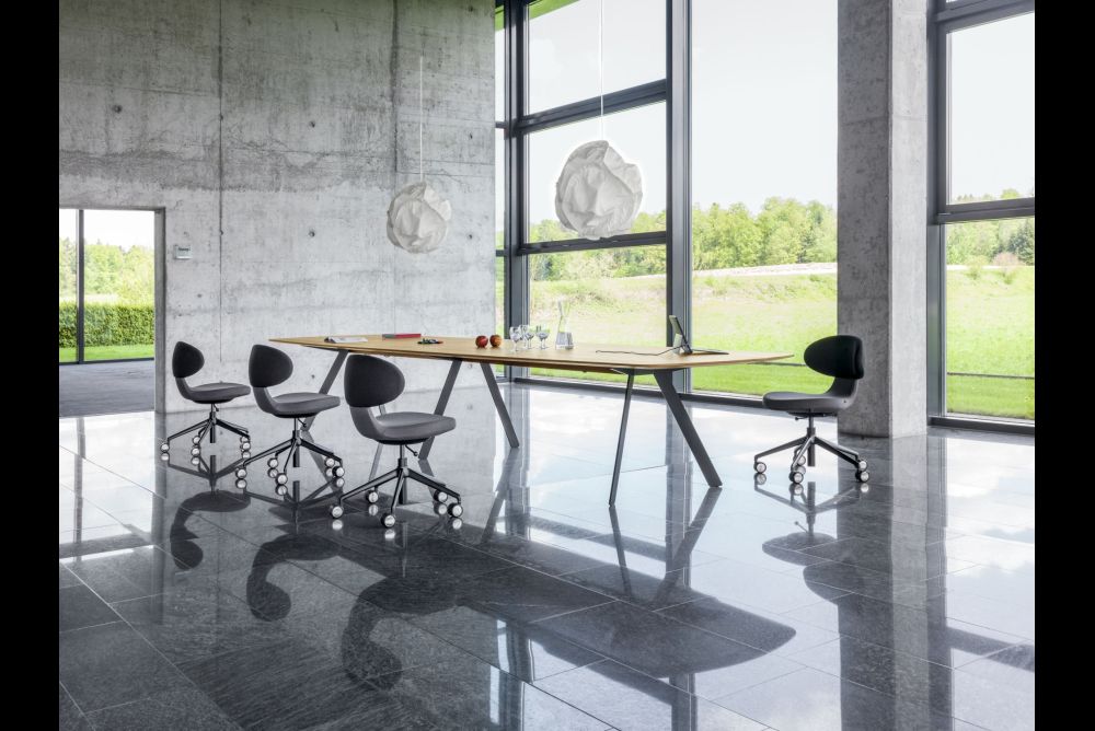 Mit den Tischplatten aus 28 mm starkem Massivholz in Eiche oder Nussbaum führt die Möbelmanufaktur aus Bützberg BE den in jüngster Zeit beschrittenen Weg fort, diesen nachwachsenden Rohstoff und dieses zugleich haptisch angenehme Material zurück in die Arbeitswelt zu bringen.