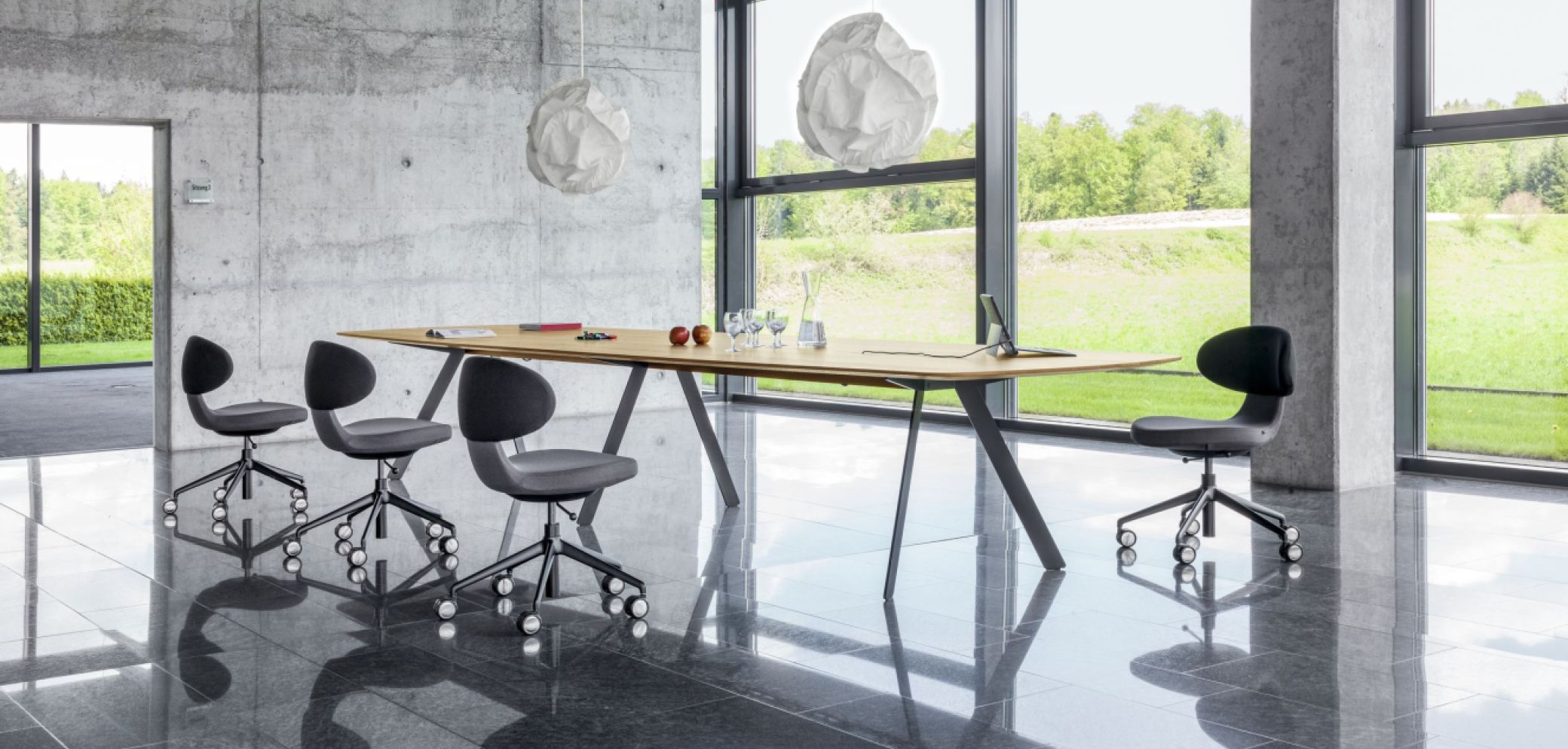 Möbel. Der Schweizer Möbelhersteller Girsberger präsentiert mit «Barra Work» einen universellen Tisch für Konferenzräume und Teamarbeitsplätze. In seinem Innern werden Kabel elegant verstaut.