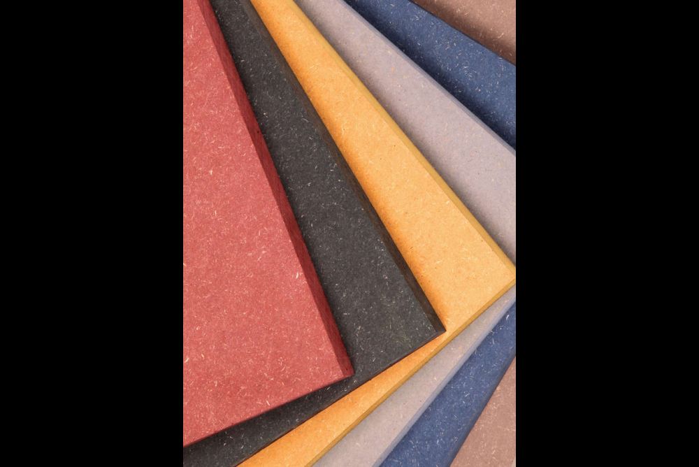 Die vier Farben Curry, Royal, Berry und Terra bilden gemeinsam mit Grey und Black das Basisprogramm der Kollektion «Innovus Coloured MDF», welche die Nach- folge der Marke «Topan Colour» übernimmt. Zu den Vorteilen gehören insbesondere die konstante Durchfärbung der formaldehydfrei verleimten Platte, verbunden mit guter Farbstabilität und Lichtbeständigkeit. Ergänzend dazu präsentiert Tafibra Suisse drei hochglänzende Effektlacke mit, je nach Lichteinfall, silber-, gold- oder aquamarin-schimmernder Anmutung. Insbesondere die Kombination mit schwarz durchgefärbtem MDF setzt individuelle Akzente.