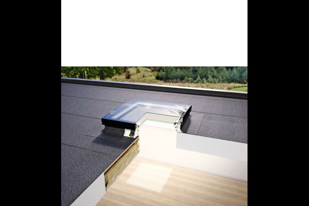 Das Bogenglas-Flachdachfenster von Velux maximiert mit seiner gleichmässigen Biegung des Glases den natürlichen Licht- einfall und bringt noch mehr Tageslicht in Innenräume. Laut Hersteller lässt die Formgebung zudem Regenwasser problemlos ablaufen und verhindert Ablagerungen von Schmutz und Blättern, was den Wartungsaufwand verringert. Auch bei starker Sonneneinstrahlung bietet das Flachdachfenster umfassenden Schutz: Dank der passenden elektrischen Hitze- und Sonnenschutzprodukte bleibt die Innentemperatur stets angenehm. Die Bogenglasvariante eignet sich für Flachdächer aller Art: Sie kann als unauffällig integriertes Dachelement oder als gestalterisches Element eingesetzt werden.