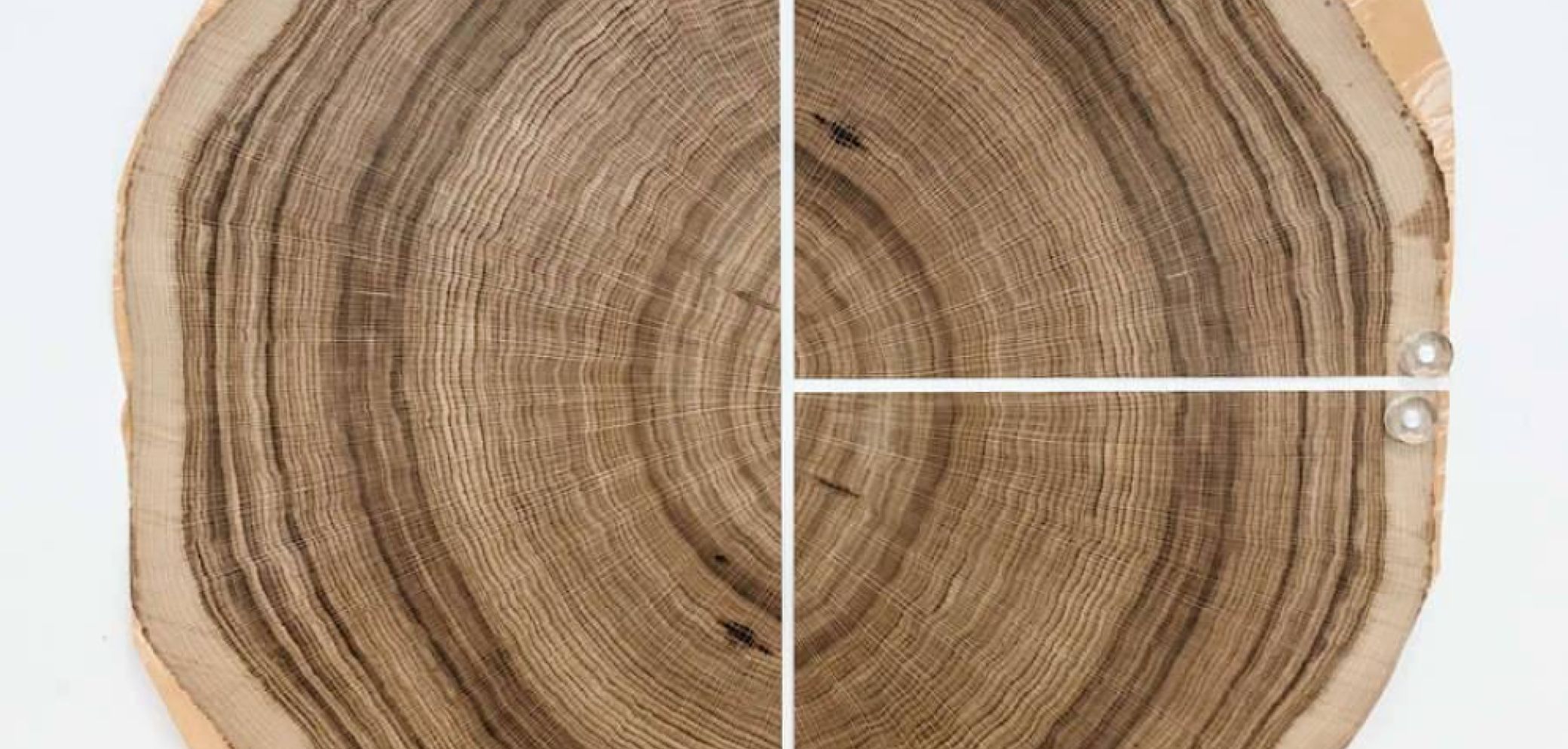 Die Roser Furnier AG wartet unter «FurnierExpress» mit einer weiteren Innovation auf. Neben den grossformatigen Fixmassen bietet das Unternehmen zusammen mit seinen Partnern auch vlieskaschierte Hirnholzfurniere in 0,9 mm starker europäischer Eiche an. Das rückseitige Vlies vermeidet den Leimdurchschlag und macht das sonst empfindliche Hirnholz-Furnier robust in der Handhabung. Als Halb- und Viertelscheibe mit einem Radius von mindestens 300 mm eignen sich die besonderen Furniere für eine Reihe von Spezialanwendungen. Beispielsweise können Kanten von furnierten Flächen belegt werden, oder sie dienen für Einlegearbeiten zur Erzeugung der natürlichen Optik von durchgestemmten Friesen auf einer Fläche.