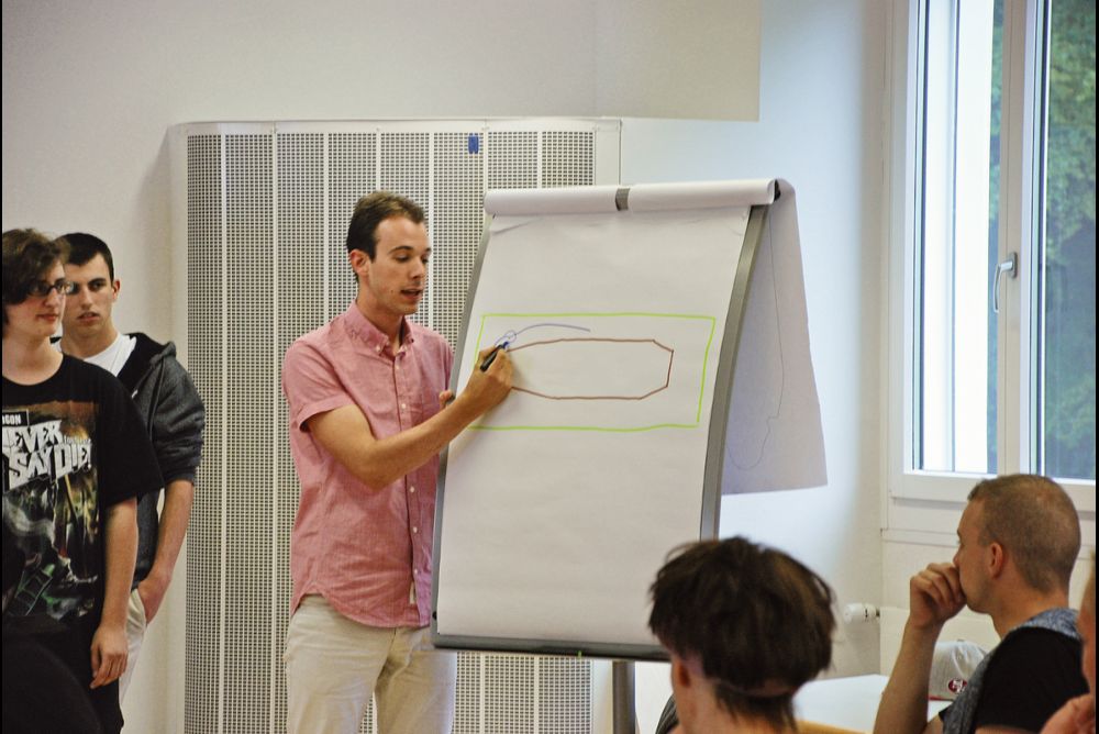 Reto Wyler präsentierte den Zuschauern, wie er sein Slalomboard auf dem CAD-Programm Pointline entwarf. In Gruppen führten die Teilnehmenden von Montag bis Freitag vor, was sie so alles gemacht und erlebt haben.