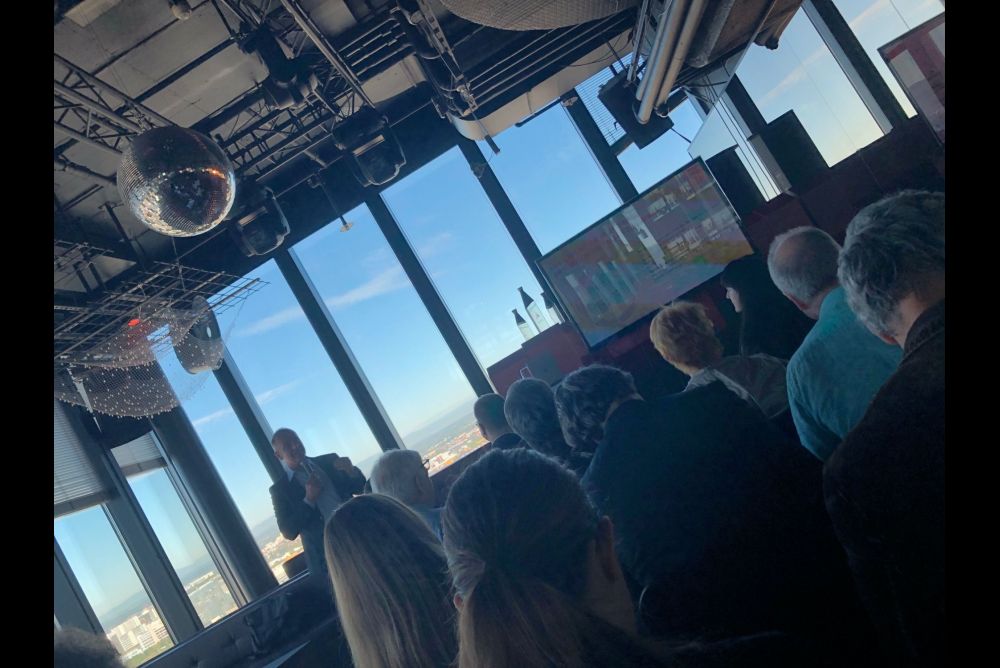 Die Swissbau informierte im 31. Stock des Messeturms in Basel über die kommende Ausführung. Bild: Noah J. Gautschi