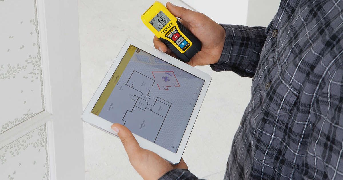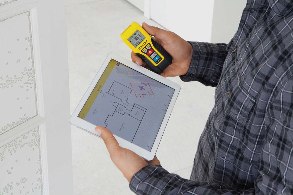 Beide Geräte sind bluetoothfähig und lassen sich zum Beispiel im Zusammenspiel mit der «Stanley FloorPlan App» mit Smartphone, Tablet und PC synchronisieren. Mit ihr lassen sich Grundrisse bequem erstellen und dann mit dem Entfernungsmesser exakt vermessen, um so beispielsweise den Materialaufwand zu berechnen. Die Grundrisse können in gängige Formate umgewandelt und gespeichert werden. Zu den Funktionen der intuitiven Software, die Daten in Echtzeit überträgt, gehört das schnelle Fotografieren des Raumes und Umwandeln der Informationen in einen Grundriss, die Verbindung zu den Entfernungsmessern für exakte Längen und die Verbindung aller einzelnen Grundrisse zu einem Gesamtriss. Besonders praktisch ist, dass die Daten auch mit Kunden geteilt werden können.