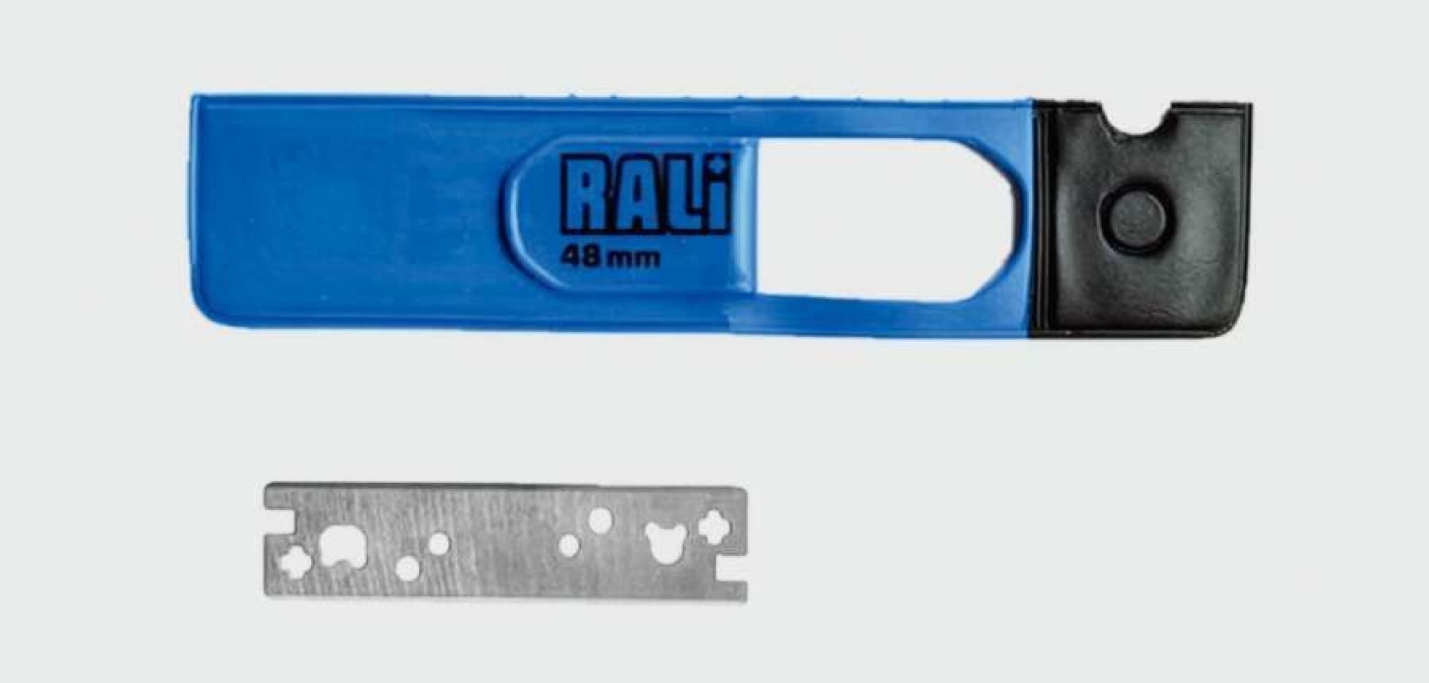 Es gibt zwei Arten von Messern für Rali-Hobel: Chromstahlmesser für den Standardgebrauch sowie weiche bis mittelharte Holzarten und Wolframkarbid-Messer für Hartholz oder abrasive Materialien wie Kompositholz, Gips, Leim, Kitt oder Kunststoff. Wolfram hat einen sehr hohen Schmelzpunkt und ist extrem hart. Der Spanwinkel bei den Wolframkarbid- Messern ist etwas grösser, und es besteht laut Hersteller eine gute Schnittqualität und Lebensdauer in den Materialien, für die es entwickelt wurde. Die Messer sind in den Breiten 30 und 48 mm erhältlich und mit dem ganzen Hobelsortiment kompatibel.