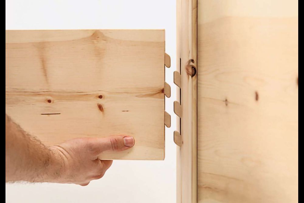 Dank der selbstklemmenden Keilbauweise entsteht eine stabile, spielfreie und verwindungssteife Verbindung. Dies erlaubt ein denkbar einfaches Zusammenbauen beispielsweise von Bettteilen.