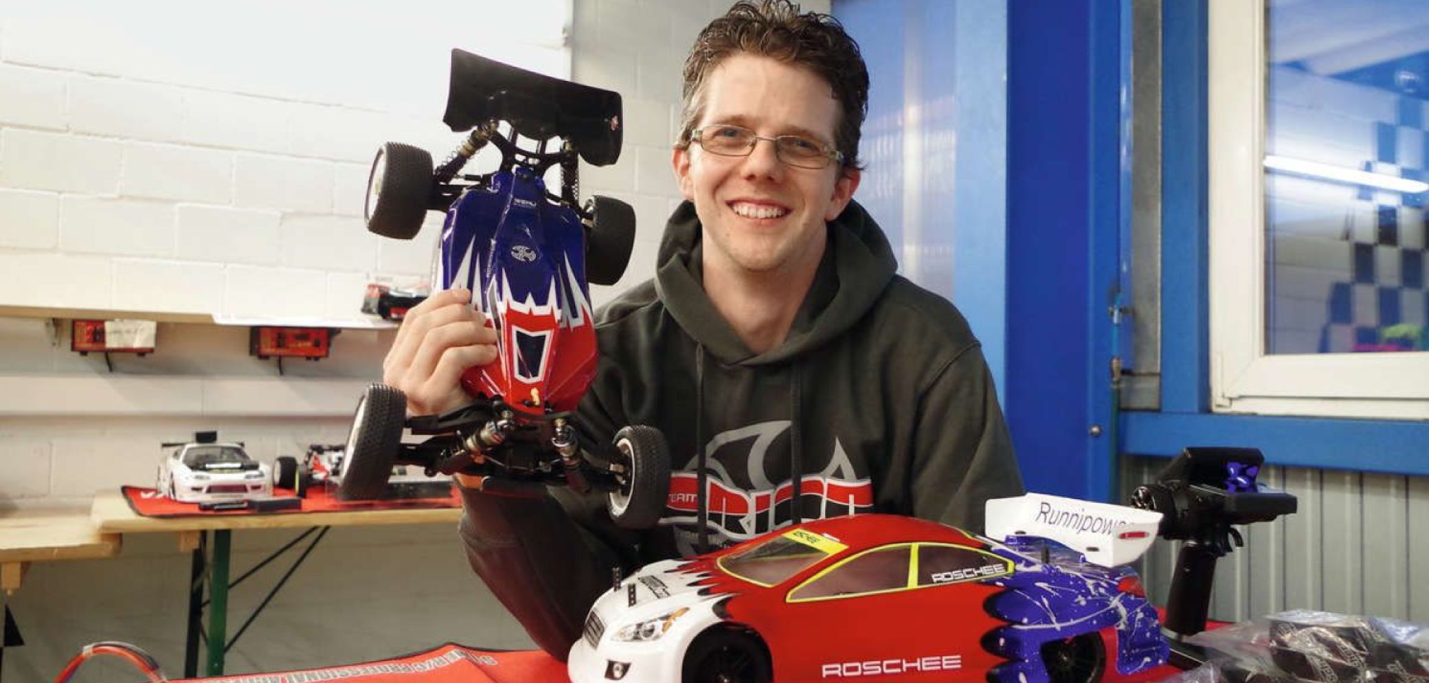 Der Motor heult auf, das Auto springt über eine Rampe und überschlägt sich. Das sieht aus wie ein übler Crash, doch Modellautopilot Reto Hunsperger bleibt cool. Flink gibt er mit dem Zeigefinger am Trigger der Pistolenfernbedienung Gas, worauf das kleine Fahrzeug wie von Geisterhand gepackt zurück auf seine Reifen hüpft und die Höllenfahrt über den «Ricci-Indoor-Rundkurs» im Industriequartier des zürcherischen Regensdorf fortsetzt. Ferngesteuerte Flug- und Fahrzeuge sind seit Weihnachten 1988 Hunspergers Leidenschaft. Damals hat er als 7-jähriger Knirps einen ferngesteuerten Monster-Beetle unter dem Christbaum entdeckt. Doch das Glück war kurz, denn schon bald war das Prunkstück fahruntüchtig und verstaubte auf dem Schrank. «Ich verstand nichts von Modellbau, und da man damals noch kein Internet hatte, war es schwierig, Ersatzteile zu finden», berichtet er. Inzwischen sieht das anders aus: Als gelernter Schreiner kann Reto Hunsperger die verschiedensten Materialien bearbeiten. Mit seinem handwerklichen Geschick dreht er an den winzigsten Schräubchen und kennt sich auch beim Lackieren aus. «Genaue und saubere Arbeit sind wie beim Schreinerberuf das A und O. Nur so erzielt man die nötige Stabilität», sagt er.