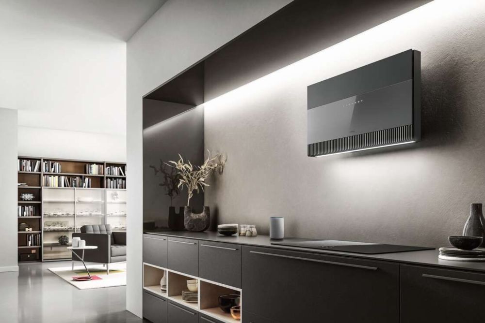 Die Dunstabzugshaube «Super Plat» von Elica eignet sich für die Montage zwischen Hängeschränken oder als Standalone-Gerät. Das Design passt sich elegant an jeden Einrichtungsstil an. Dank der «Connex»-Technologie lässt sich die Konnektivität über die Elica-App oder den Sprachassistenten «Intuiev» steuern. So kann man die Beleuchtung und die Geschwindigkeiten einstellen, Benachrichtigungen zum Status der Filter erhalten und erfahren, wann diese gereinigt oder ausgetauscht werden müssen. Ausserdem kann man den Kundendienst in Echtzeit kontaktieren. Die Dunstabzugshaube verbindet sich mit «Multi Connection» über Bluetooth mit den Kochfeldern von Elica und passt die Beleuchtung und Absaugleistung automatisch an die gewählte Kochstufe an. Der bürstenlose Motor gewährleistet laut Hersteller auch bei höchster Leistung maximale Geräuscharmut und reduziert den Energieverbrauch. «Super Plat» ist in schwarzem oder grauem Glas mit Details in Gusseisen- optik erhältlich.
