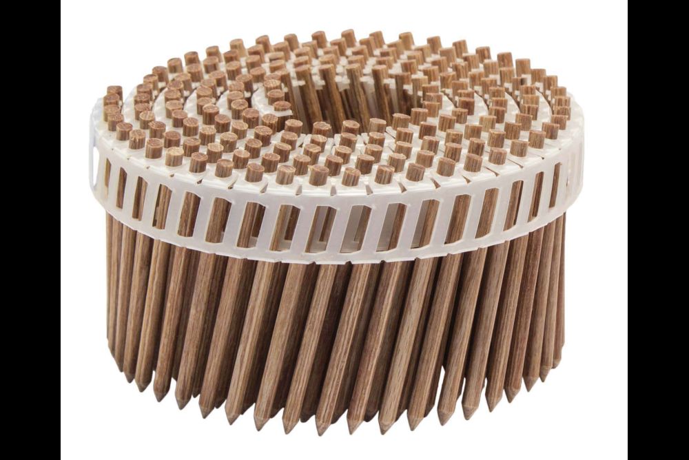 Der erste magazinierte Nagel aus Holz. Bild: Beck Fastener Group