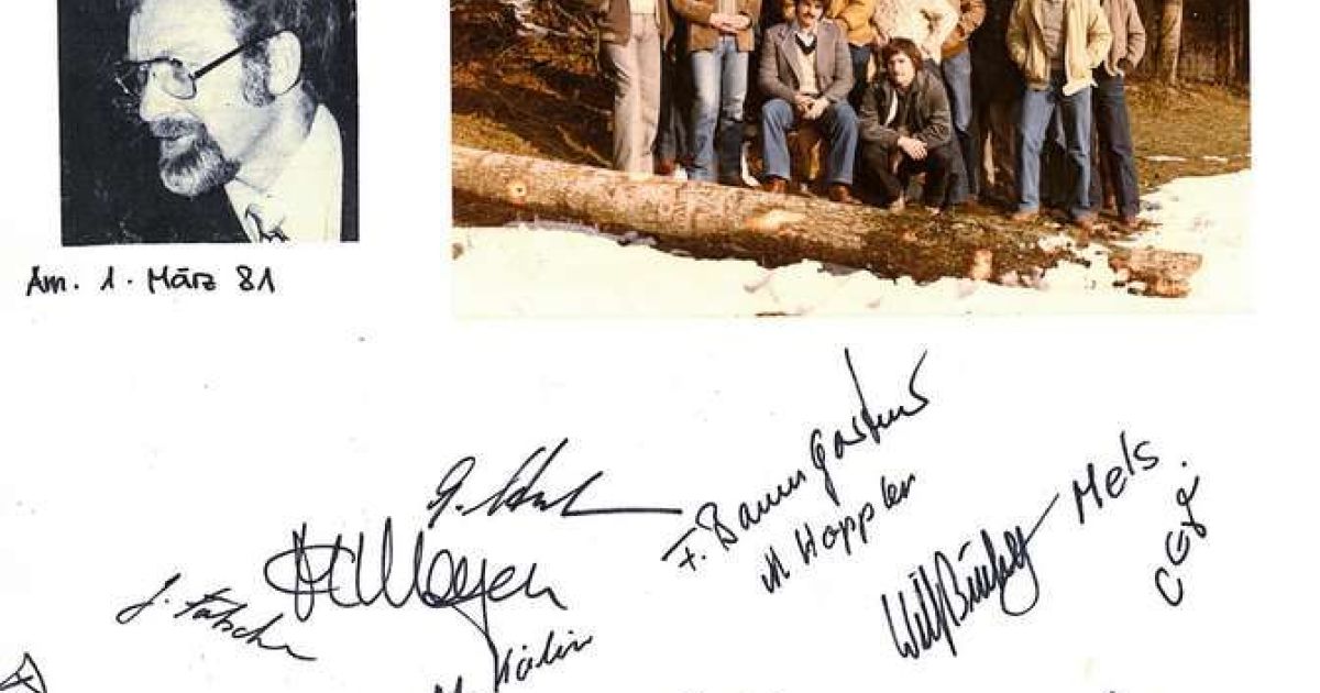 Das Gästebuch von 1981. Tanga, Tangens und Pythagoras: An der Fasnacht gerieten die Schreinermeister in spe etwas durcheinander. Bilder: VSSM