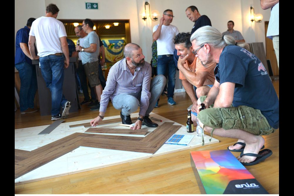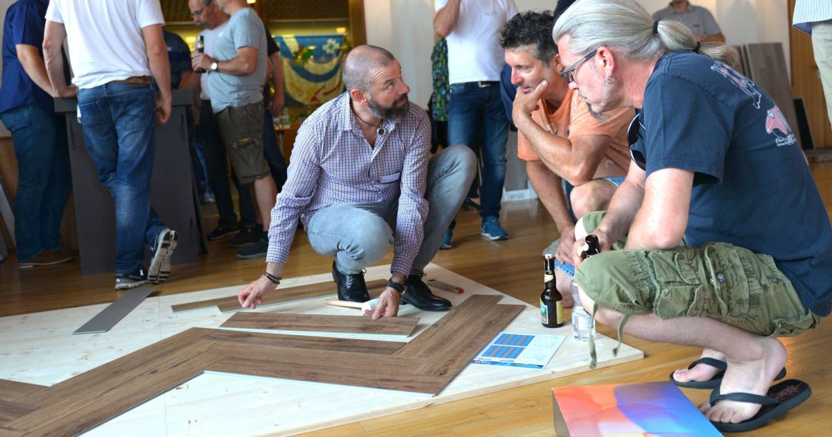 Gleich vor Ort konnte der neue LVT-Bodenbelag «Jazz» verlegt und getestet werden. Bild: Enia Flooring International AG