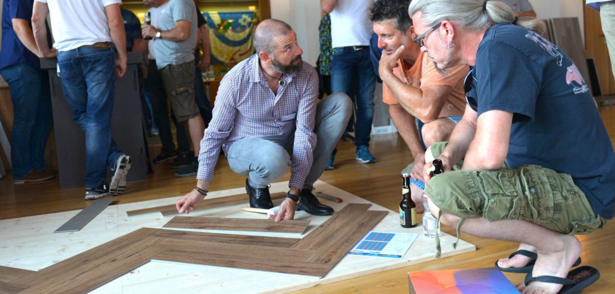 Das Highlight der Roadshow war der neue LVT Bodenbelag «Jazz», der erstmalig einem breiteren Publikum vorgestellt wurde. Mit dem auf PVC basierenden Belag können Holz- und Steindekore bei schwimmender Verlegung kombiniert werden und lassen über 100 verschiedene Verlegemöglichkeiten zu. Die Besucher nutzten die Gelegenheit und testeten das Verlegen gleich vor Ort.