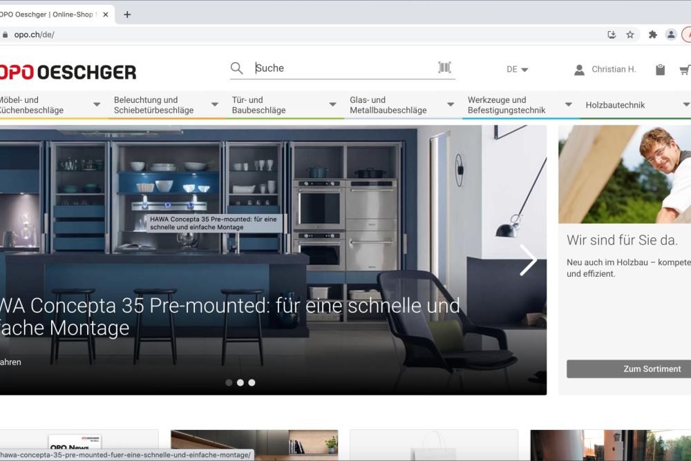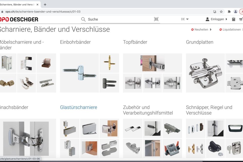 Wer die Internetadresse von Opo Oeschger eingibt, gelangt direkt zum riesigen digitalen Branchenkaufhaus. Rund 60'000 Artikel umfasst das Sortiment des Beschlagspezialisten. Daneben sind auch umfängliche Sortimente an Befestigungsmitteln, Werkzeugen und jedwede Hilfsmittel mit im Programm.