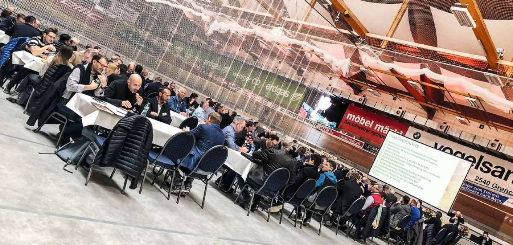 Die Versammlung hiess den modernen Auftritt mit neuem Logo (r.) einstimmig gut. Bild: Noah J. Gautschi