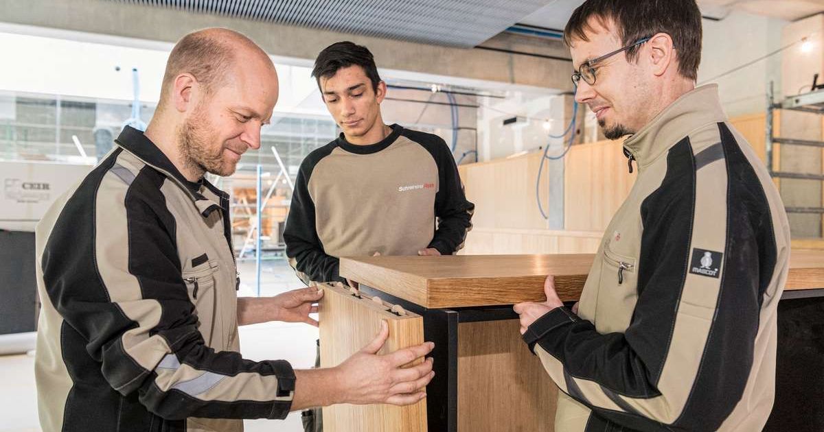 Michael Roth, Severin Stalder und Markus Neuenschwander (v. l.) sind überzeugt von der Lamello-Qualität. Bild: Lamello AG