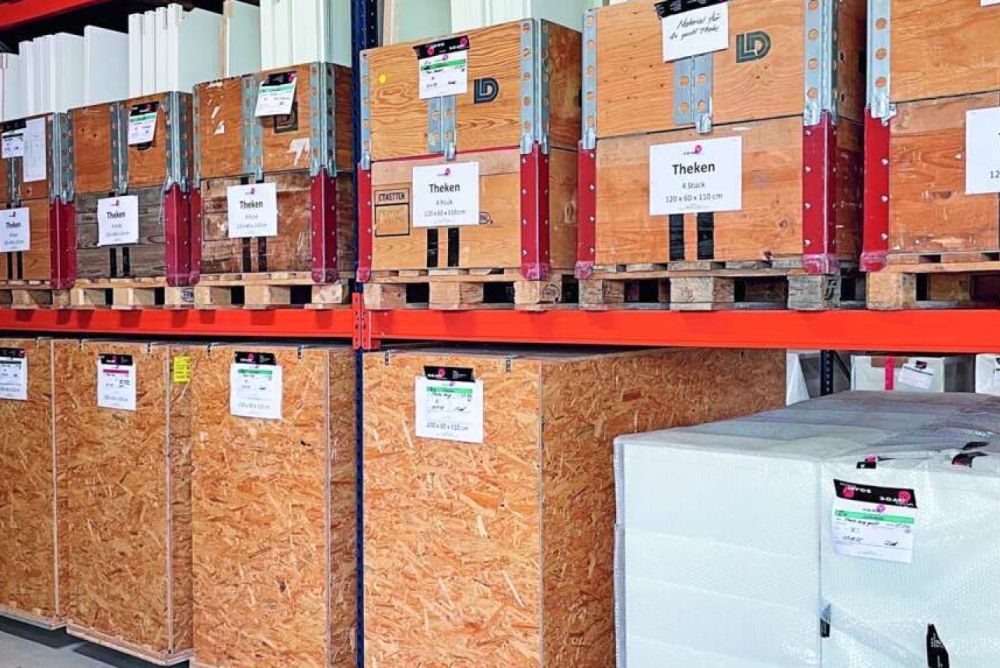 Wie ein optimales Verhältnis zwischen Modularität und Leichtigkeit gut umgesetzt werden kann, zeigt die Firma 3-D-Art AG in Inwil LU. Sie ist spezialisiert auf den Event- und Messebau. Ein Miet- und Kaufsortiment von Messemöbeln steht zur Verfügung, aber auch individuelle Ausstellungsstücke werden nach Kundenwunsch hergestellt. «Grundsätzlich ist Leichtbau bei uns bei fast jedem Auftrag ein Thema. Es geht oft nicht einmal um die Materialisierung, sondern mehr um die Planung und Konstruktion der Möbel», wie Martin Doppmann, Projektleiter bei 3-D-Art AG, sagt. «Für uns ist die Logistik ein grosses Thema. Da wir schweizweit unterwegs sind, wird darauf geachtet, das Volumen auf eine gewisse Grösse bringen zu können, ohne gleich mit einem Lastwagen mehr fahren zu müssen. Sind wir beispielsweise beim Transport von Theken volumentechnisch knapp an der Grenze, überlegen wir uns, diese nicht komplett zu liefern, sondern in drei, vier modularen Teilen, um sie dann vor Ort zusammenzubauen», fügt Doppmann an. Die Möbel sind so konstruiert, dass man sie kompakt in Rahmenpaletten transportieren kann.