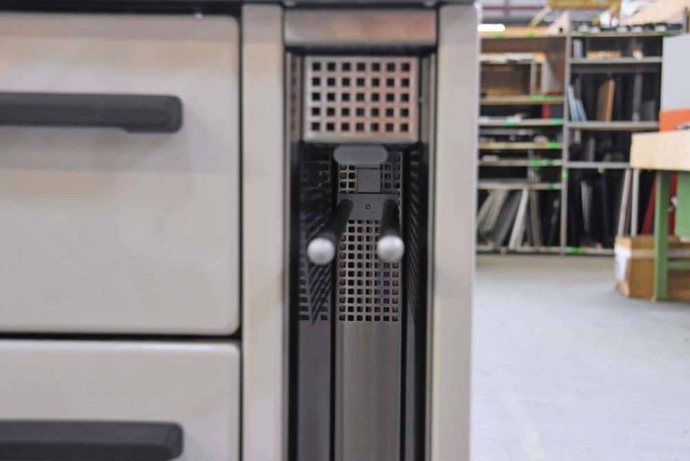 Eine Ausnahme stellt hier der «Fuego» von Tiba dar: Der Holzherd ist mit einem speziellen Mantelkühlsystem inklusive Ventilator ausgerüstet. Dadurch bleiben die Oberflächentemperaturen so tief, dass der Küchenbauer seine Elemente ohne Sicherheitsabstand zum Herd aufstellen darf. Die ganze Technik ist im «Fuego» integriert, es braucht lediglich einen Stromanschluss für den Ventilator und zwei Luftauslässe im Sockelbereich, wo die warme Luft an den Raum abgegeben werden kann.