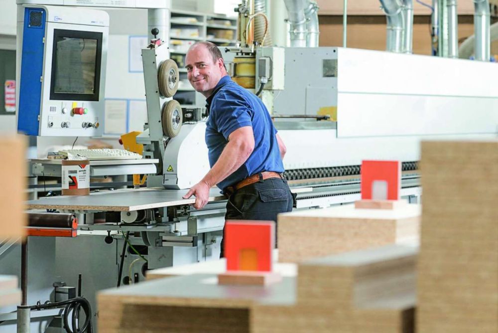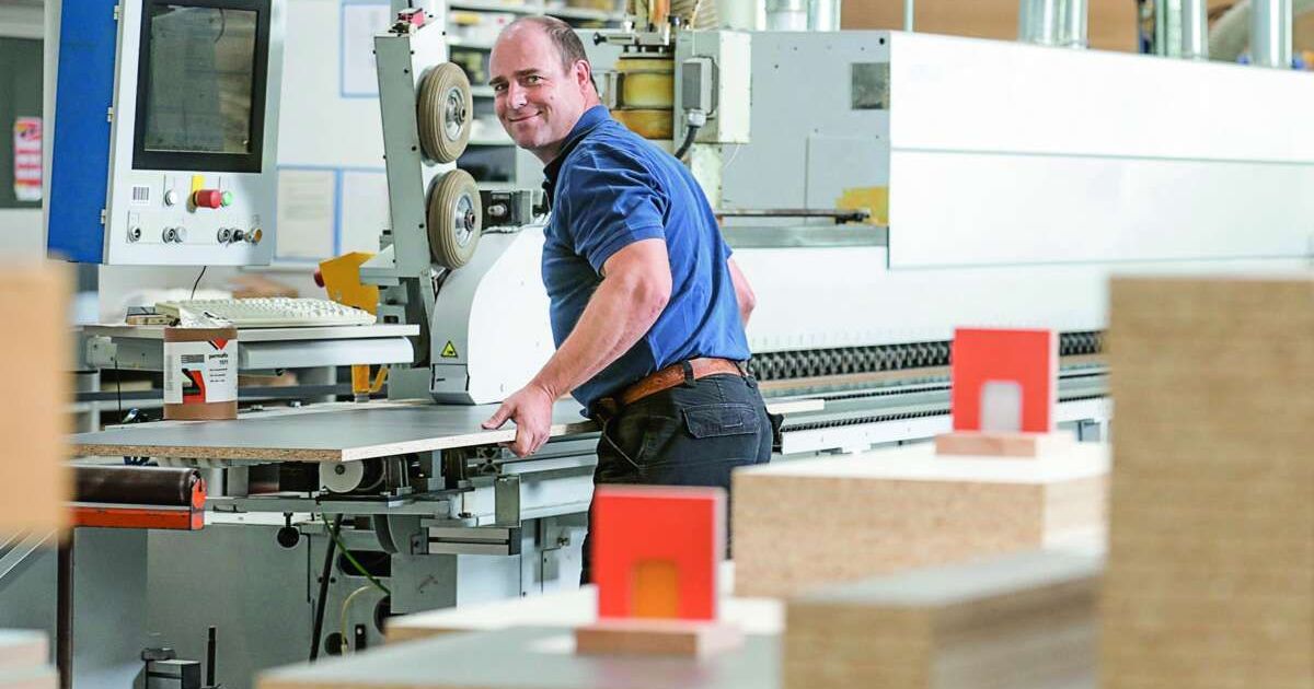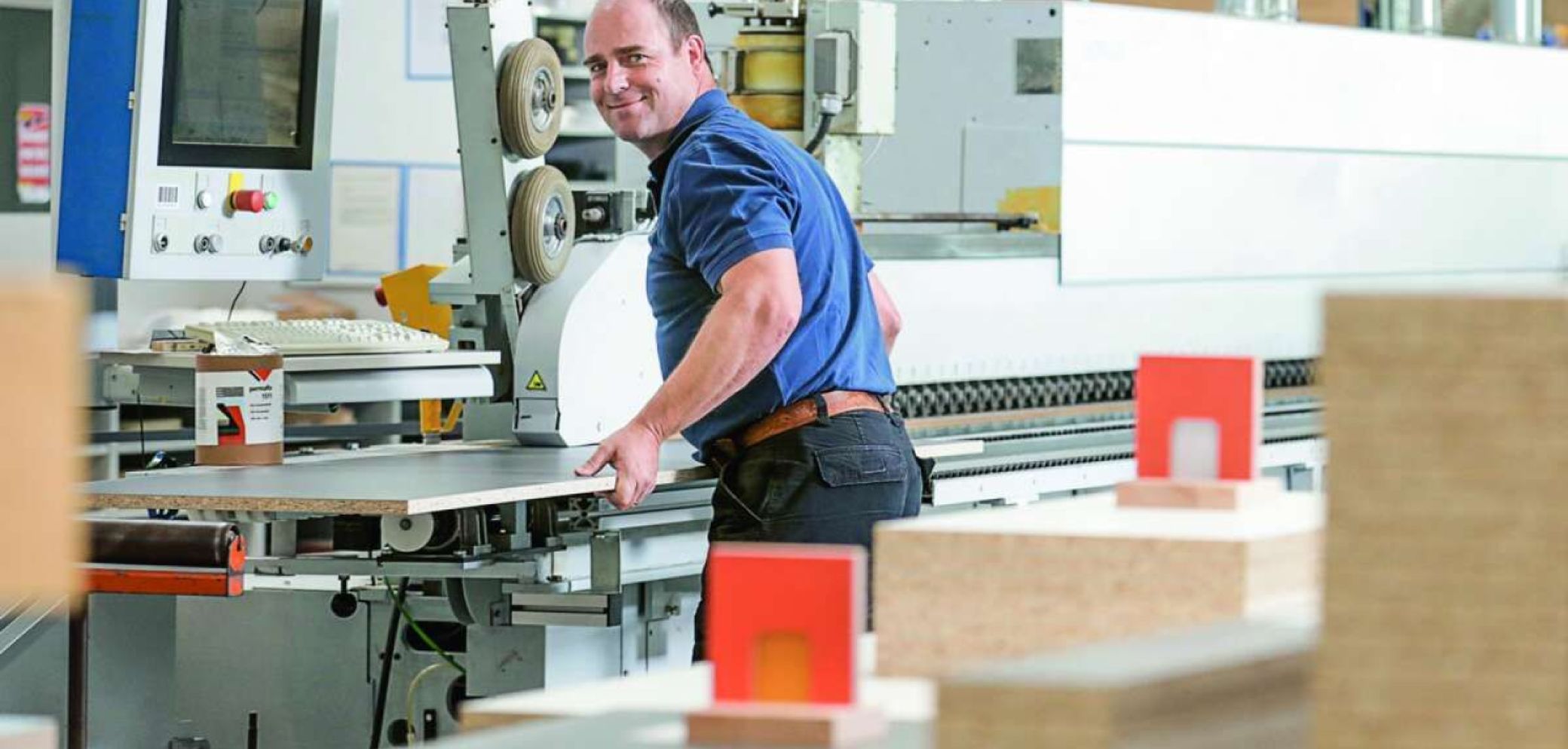 Erich Keller, Leiter Produktion bei der Killer Interior AG, nutzt Permafix-Klebstoff für die Kantenverklebung. Bild: Permapack AG