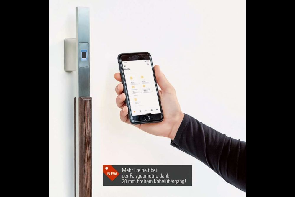 Das biometrische Zutrittssystem «Gela plug&play» ist mit einem laut Hersteller einzigartigen 20 mm schmalen Kabel- übergang erhältlich: Durch die gewonnene Fläche bietet der ohnehin bereits trennbare Kabelübergang noch mehr Freiheit bei der Falzgeometrie und ermöglicht es, schlanke und ästhetische Lösungen zu entwickeln.