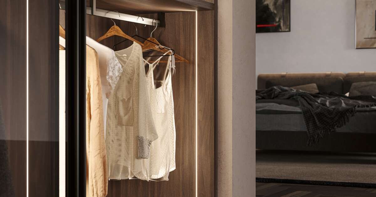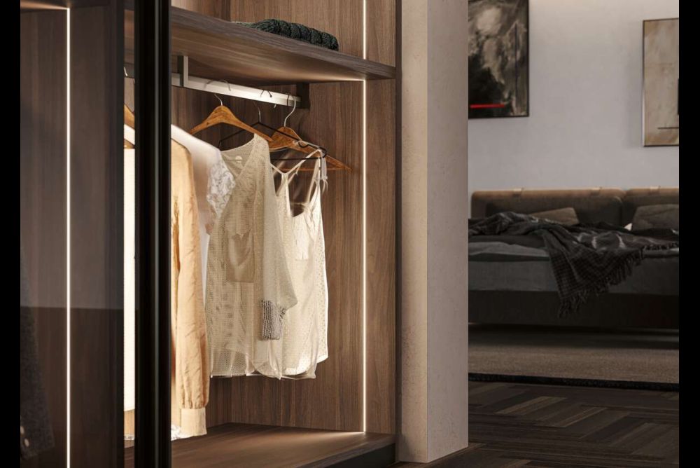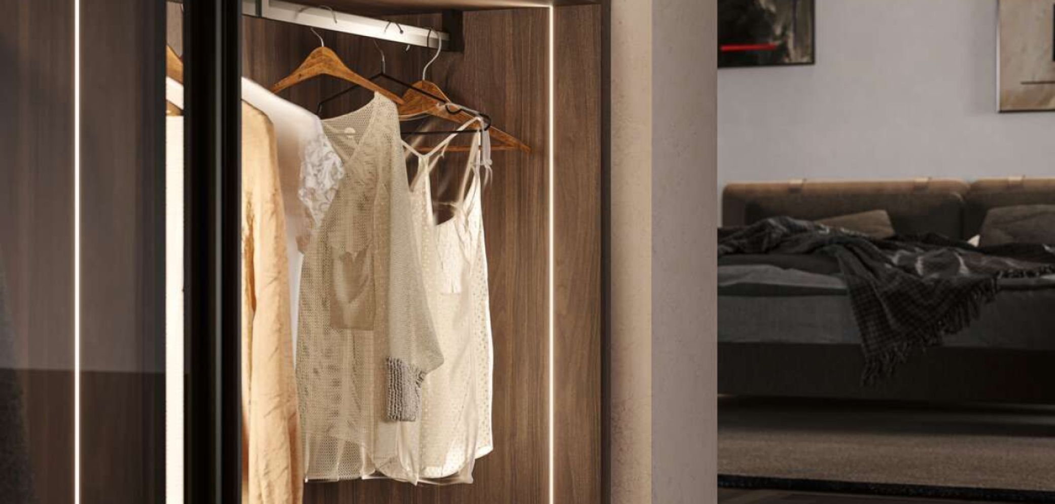 Das LED-Mikro-Lichtprofil «Fynn» mit versenkter Optik ist minimalistisch und schlicht im Design. Das Profil mit asymmetrischer, um 20° nach innen oder aussen geneigter Lichtverteilung ist für den flächenbündigen Einbau unter dem Regalboden oder auch an den Seiten des Schranks gedacht. Seine spezielle Form mit zwei Mikrovorsprüngen in weisser oder schwarzer Ausführung ermöglicht es, den Leuchtpunkt einzufahren und die Blendwirkung zu verringern. Die End- kappen sind so konzipiert, dass sie die Zentrierung der Lichtquelle sowie die korrekte Positionierung und den Austritt des Kabels sicherstellen – entweder radial oder axial zur Installationsfläche.