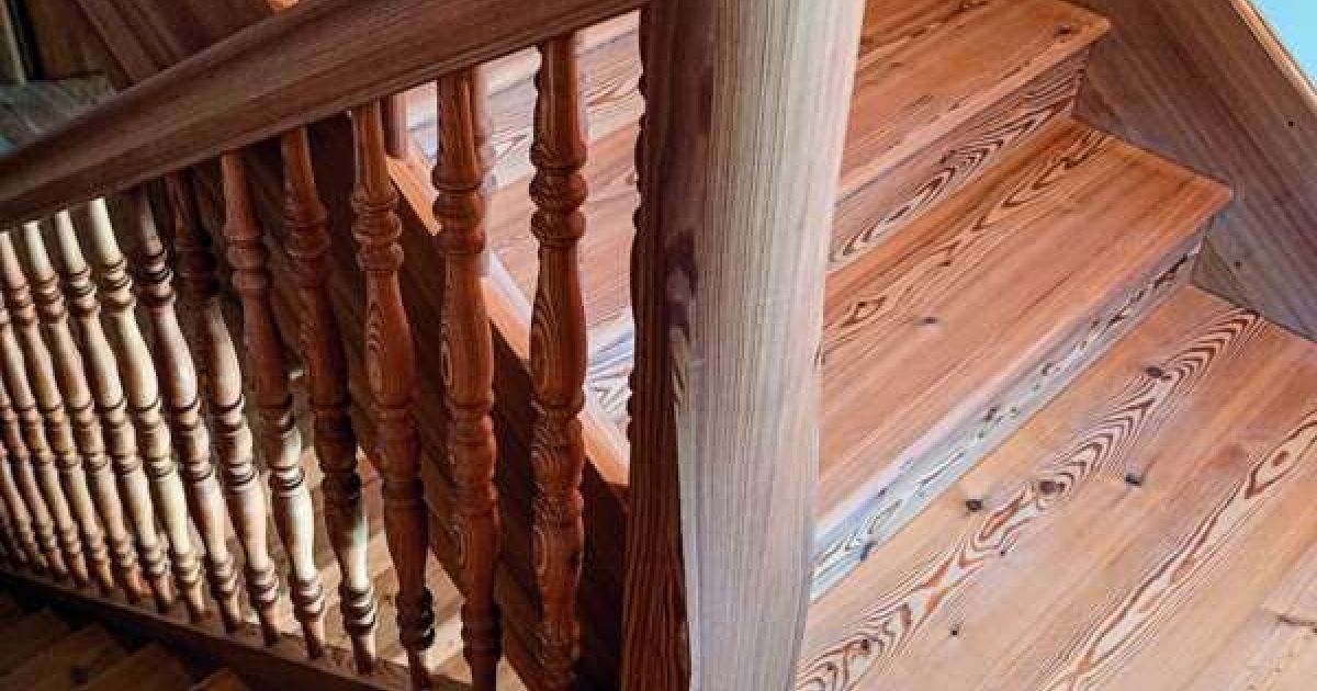 Weil die Freiwangen samt den Pfosten schon in einem früheren Baustadium gesetzt werden mussten, erhielten die Handläufe eine Schwalbenschwanzverbindung. So konnten sie später zusammen mit den Staketen von oben eingeschoben werden.
