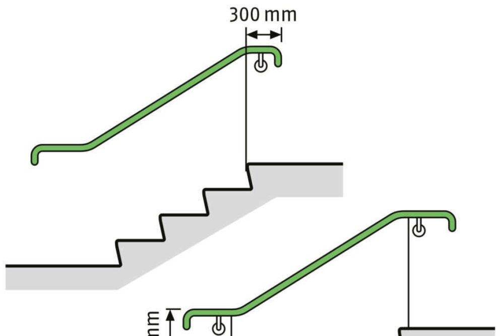 Wenn Gebäude regelmässig oder mehrheitlich von Kindern benutzt werden, sollten Kinderhandläufe angebracht werden. Diese werden auf 650 mm Höhe positioniert und müssen für Kinderhände sicher greifbar sein – 35 mm im Durchmesser.