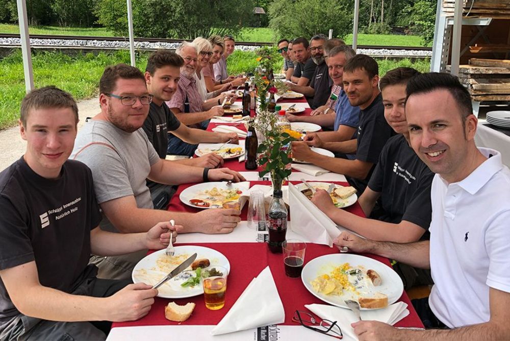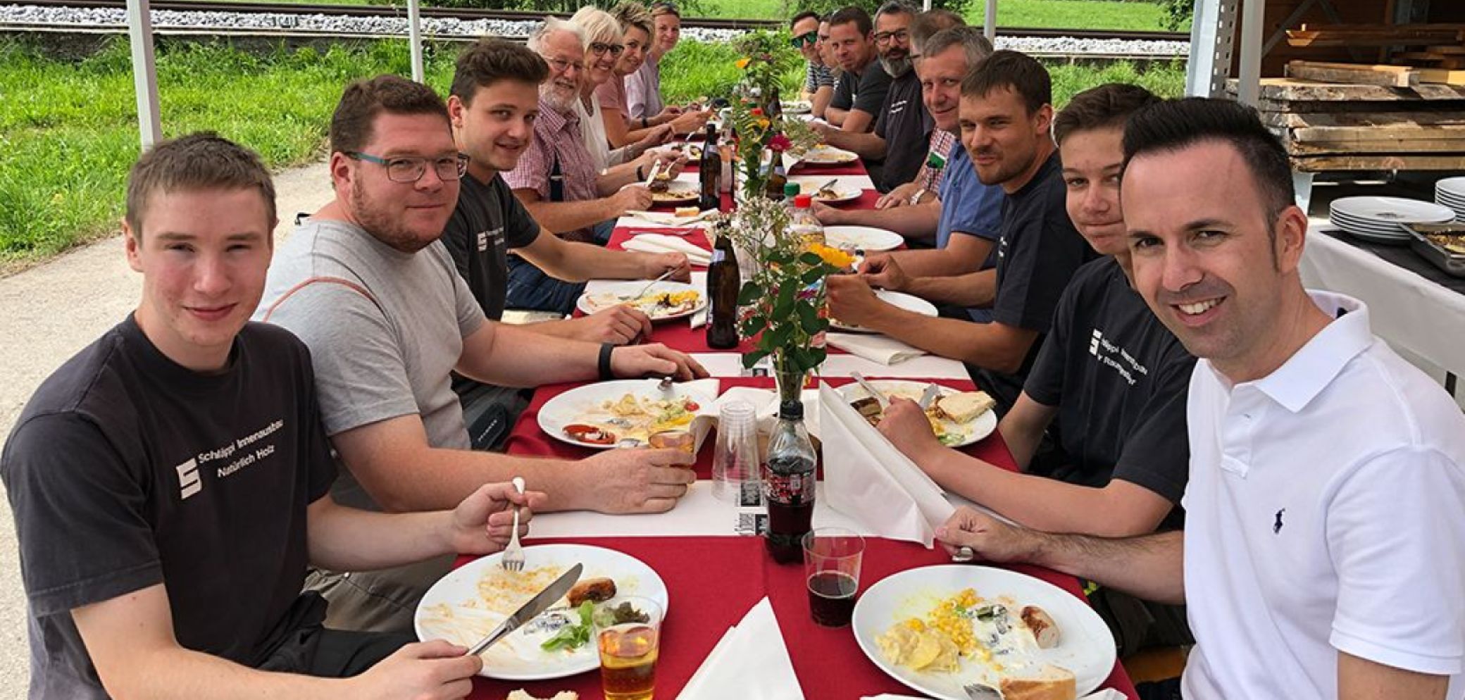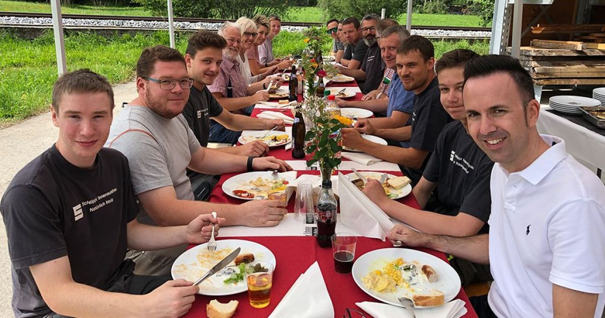 Nur ein paar Schleierwolken zogen träge über das Berner Simmental, als sich vor der Schläppi Innenausbau GmbH der Duft von Bratwürsten, Schweinssteaks und Rindsplätzli ausbreitetet. Dort tischte der Verband Schweizerischer Schreinermeister und Möbelfabrikanten VSSM vergangenen Freitag ein herzhafter Grill-Zmittag für die ganze Belegschaft auf. Grund für dieses sommerliche Mittagsbuffet bei strahlendem Sonnenschein war der Schreiner-Weihnachtsbau Wettbewerb, der vergangenen Winter stattfand.