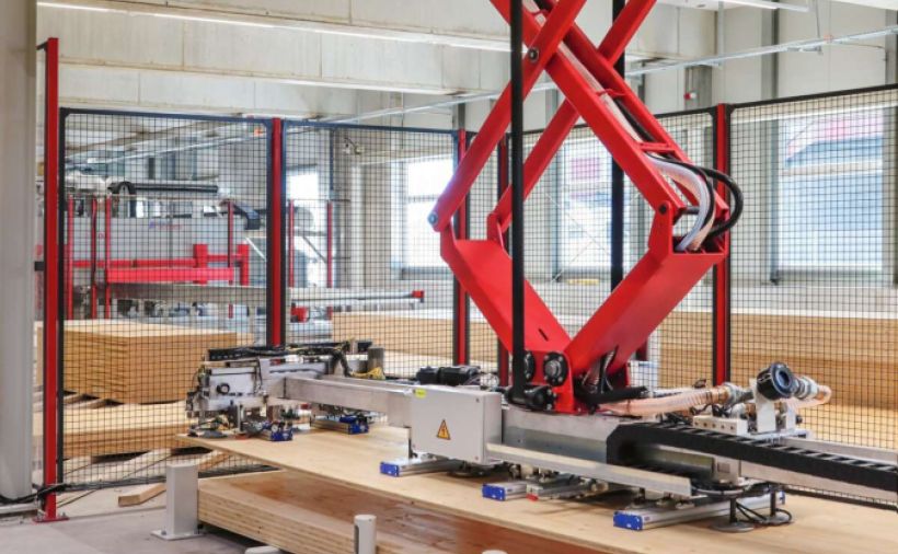 Die «FAT»-Hubtischmodelle von Felder können auf Wunsch auch mit einer Plattenschwenkeinrichtung ausgerüstet werden. Die Vorrichtung mit einer Rahmengrösse von 1930 × 1500 mm lässt sich von 0 bis 80° schwenken und ermöglicht somit das Handling von grossformatigen Platten bis 40 mm Stärke durch eine Person. Laufrollen und die in die Rahmenprofile integrierten Allseitenrollen erleichtern dabei das Auf- und Abladen der Platte.