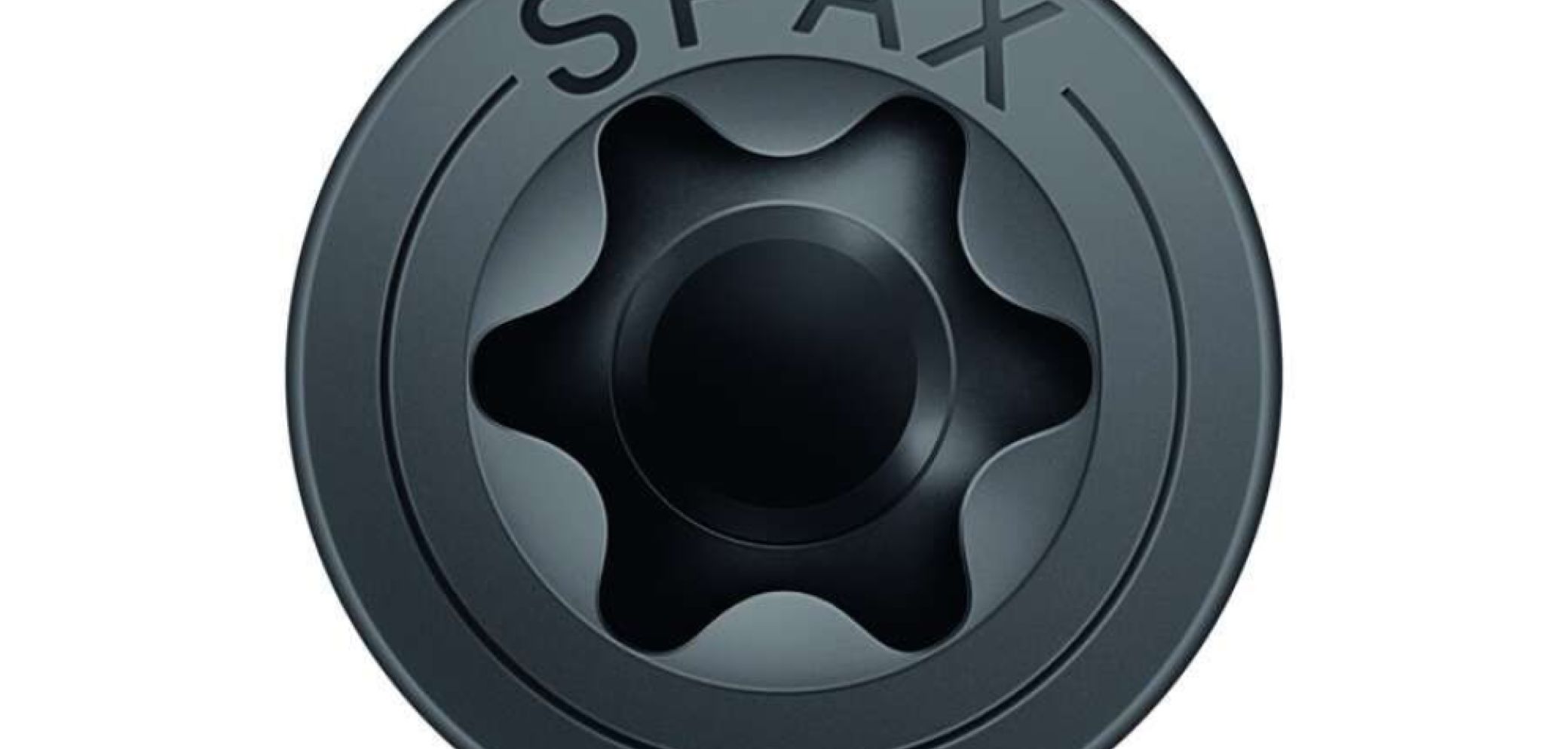 Die neue Universalschraube von Spax in einem kräftigen Schwarzfarbton bietet eine ästhetische Verbindung für verschiedene Einsatzbereiche in heutigen Haushalten. Ob im Möbelbau mit dunklen Beschlägen oder für die Möbelrestauration mit dunklen und antiken Hölzern – die Verwendungsmöglichkeiten sind vielfältig. Neben dem dekorativen Möbelbau lassen sich die schwarzen Schrauben auch optimal in Tür- und Fensterbeschlägen verwenden – einsetzbar nach EN 1995-1-1 in Nutzungsklasse 1. Durch das Spax-Gewinde mit Gleitbeschichtung und optimaler Gewindesteigung ist ein schnelles Einschrauben bei geringem Kraftaufwand möglich. Das Wellenprofil und die 4-Cut-Spitze verringern zudem effektiv die Spaltwirkung und minimieren das Einschraubmoment. Der T-Star-plus-Kraftangriff sorgt für einen sicheren Bit-Sitz für kontrolliertes Einschrauben, sodass das Verkratzen von Oberflächen vermieden wird. Dadurch lässt sich die Schraube bequem demontieren und eignet sich auch zur Verwendung bei Reparaturen.