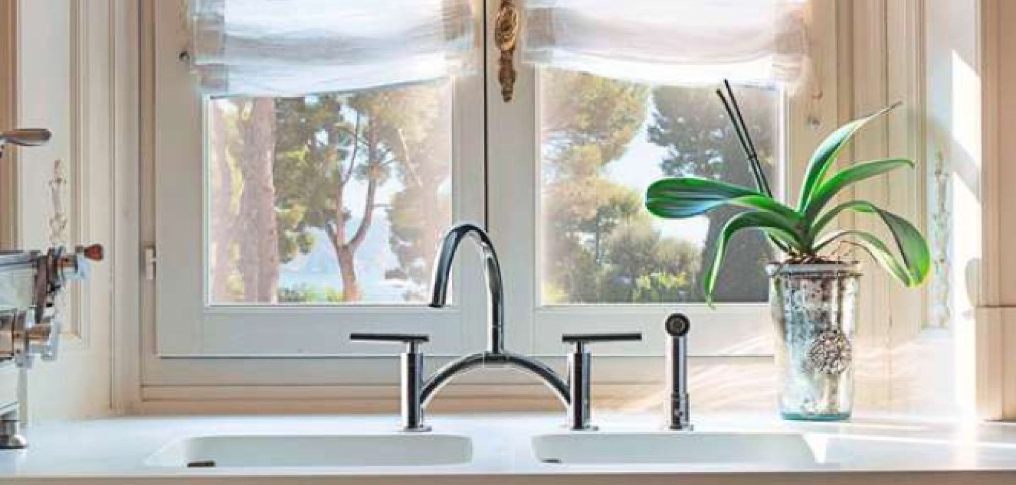 Die «Sospiro»-Kollektion aus dem internen Graff-Designstudio G + verbindet eine moderne Formensprache mit traditionellen Elementen. Erhältlich ist sie sowohl als Einloch-Armatur als auch im gängigen Brückenstil. Die klassische Silhouette der Brückenarmatur verbindet klare Linien mit ausgiebigen Bögen und fügt sich in die Ästhetik moderner Einrichtungsstile ein. Die Armatur ist in der Einloch-Variante mit einem ausziehbaren Sprühkopf ausgestattet, inklusive doppelter Funktion mit Brause- und Normalstrahl. Dies erlaubt eine flexible Anwendung und macht «Sospiro» auch für Barbereiche interessant.