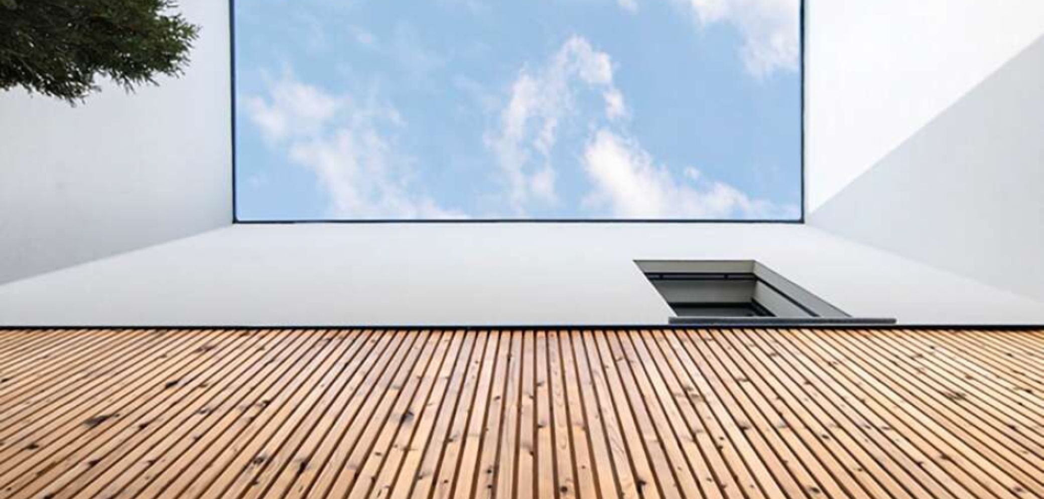 «Luna Triple 32 × 140» ist eine hochwer- tige Thermoholzplatte von Lunawood für Fassaden, Innenräume, Decken und andere dekorative Oberflächen aus PEFC-zertifizierter nordischer Fichte. Dank des «Thermowood»-Herstellungsverfahrens ist das Rohmaterial der Platte laut Firmenangaben sehr formstabil, völlig harzfrei und ungiftig. Der thermische Modifizierungsprozess verbessert die Haltbarkeit des Holzes, ohne dass Chemikalien benötigt werden, und sichert so eine nachhaltige und sehr lange Lebensdauer. «Thermowood» soll ohne Oberflächenbehandlung im Freien eingesetzt werden können und nimmt durch die UV-Strahlung der Sonne und Feuchtigkeit allmählich eine silbergraue Farbe an. Thermisch modifiziertes Fichtenholz ist ein guter Rohstoff für das «Luna Triple»-Profil. Dieses Produkt hat zwei tiefe Rillen, die der Oberfläche ein Lattenbild verleihen. Dank der tiefen Rillen und des «T&G Profile» ist die Verlegung einfacher und schneller als die Verlegung einzelner Latten. «Luna Triple» ist seit Anfang 2023 als brandgeschütztes Produkt erhältlich. Das Produkt erreicht die Brandklasse B-s2,d0 für die Aussenanwendung.