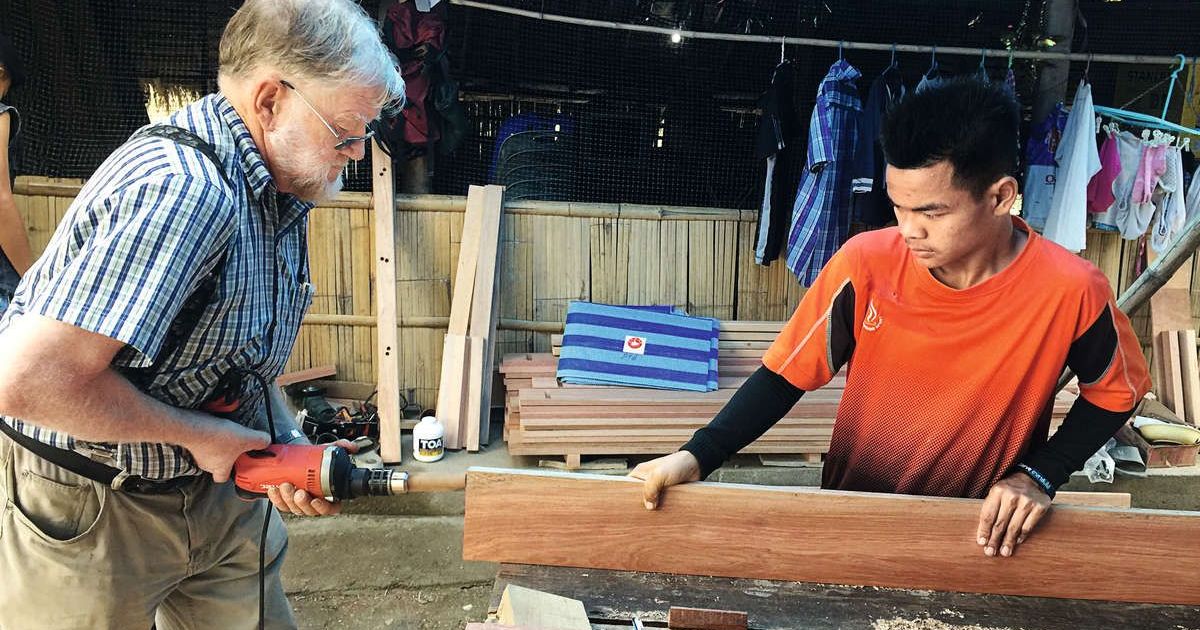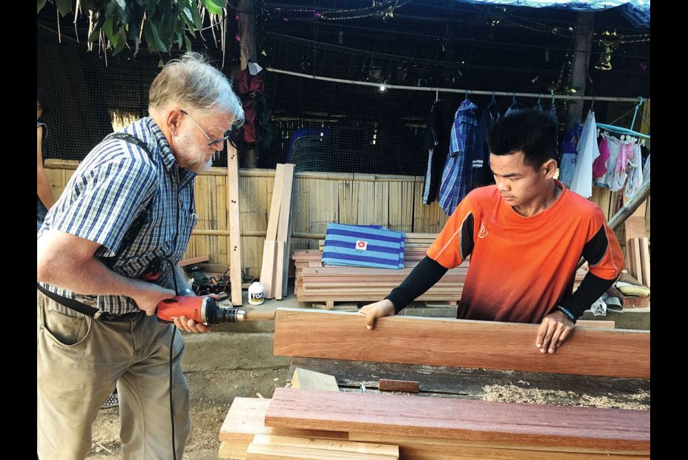 Kurt Häfliger (71) bei der Arbeit in Thailand. Schüler Natham hilft tätkräftig mit.