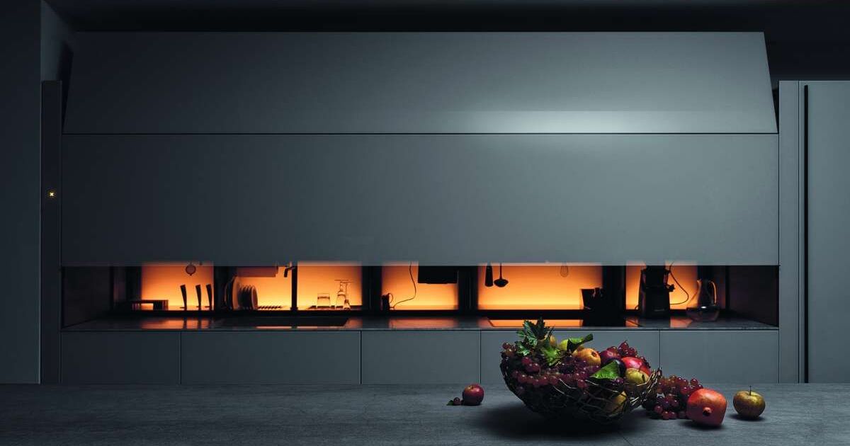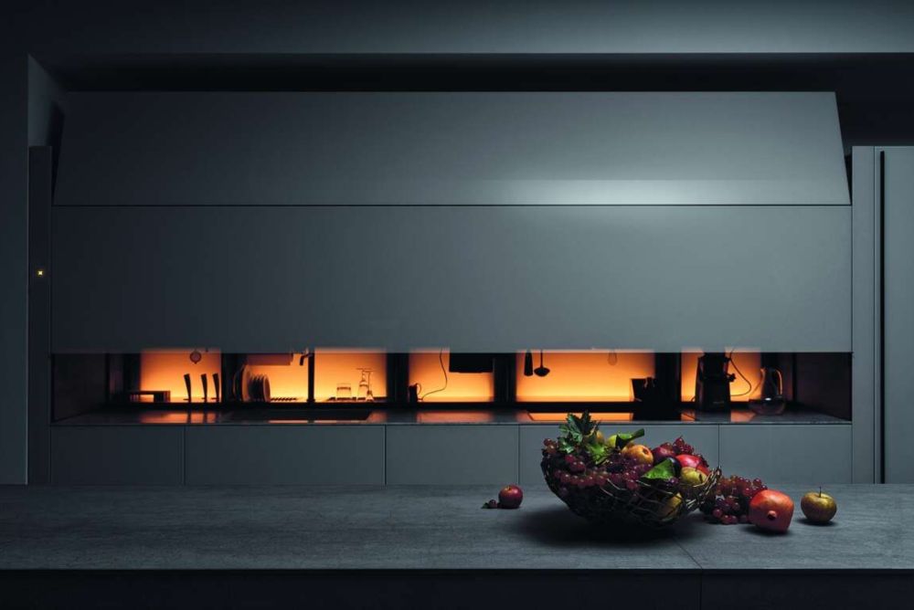 Ein spannendes Szenario bietet Valcucine auf Fingerzeig durch den Sensor in der Mitte der Front. Bild: Valcucine