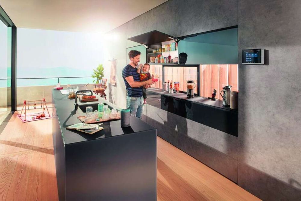 Für das berührungslose Öffnen und Schliessen hatte Blum zuletzt eine Lösung als Konzeptstudie präsentiert, bei der mittels App und Sprachsteuerung die Bewegung aktiviert wird. Dann könnte etwa mit einem hinterlegten Sprachbefehl wie «Siri, ich will Müll entsorgen» das automatische Öffnen des Auszuges mit der Abfalltrennung vonstattengehen.