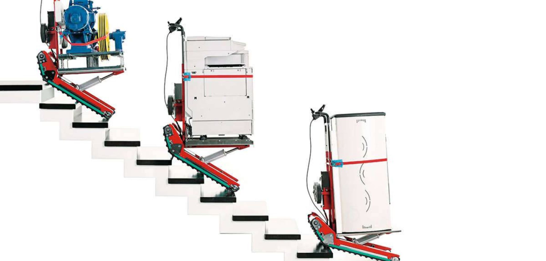 La società tedesca Zieker GmbH offre vari dispositivi per il trasporto. Il carrello «Carry- flex» ne è un esempio. Pieghevole, di piccole dimensioni, con un peso di 28 chili, può trasportare porte, pannelli o simili fino a 130 chili. Zieker ha ridefinito pure il trasporto su scala grazie all’innovazione delle triplici ruote disposte a stella: le «Treppensteiger» hanno un peso di 41 chili e sono in grado di trasportare carichi fino a 300 chili; grazie alle triplici ruote a stella è possibile una sosta intermedia ad ogni singolo scalino, questo alleggerisce notevolmente il carico dell’utilizzatore.