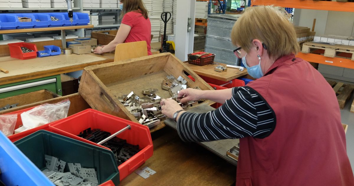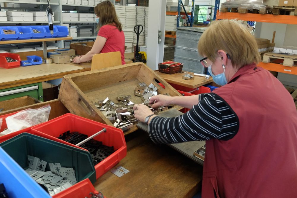 Mitarbeiterinnen der Schlossfabrik Heusser bei der Endmontage. Bild: Stefan Hilzinger