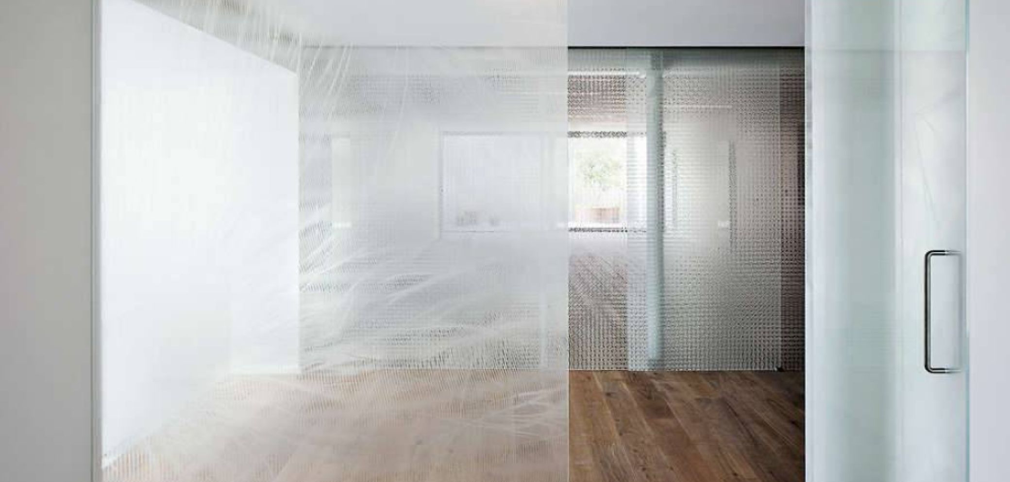 Gravur. Graviertes Glas schmückt Möbel, schafft Raumatmosphären und dient gleichzeitig als Sicht- und Kollisionsschutz. Einzigartige Muster, abgestimmt auf das Gebäude, deren Bewohner und Umgebung, kreiert die Designerin Susanne Dubs.