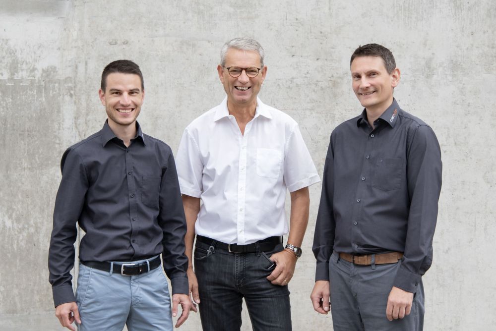 Raphael Cotting (links) und Roland Schmid (rechts) übernehmen die Creatop AG von Alex Brändle (Mitte). Bild: Creatop AG