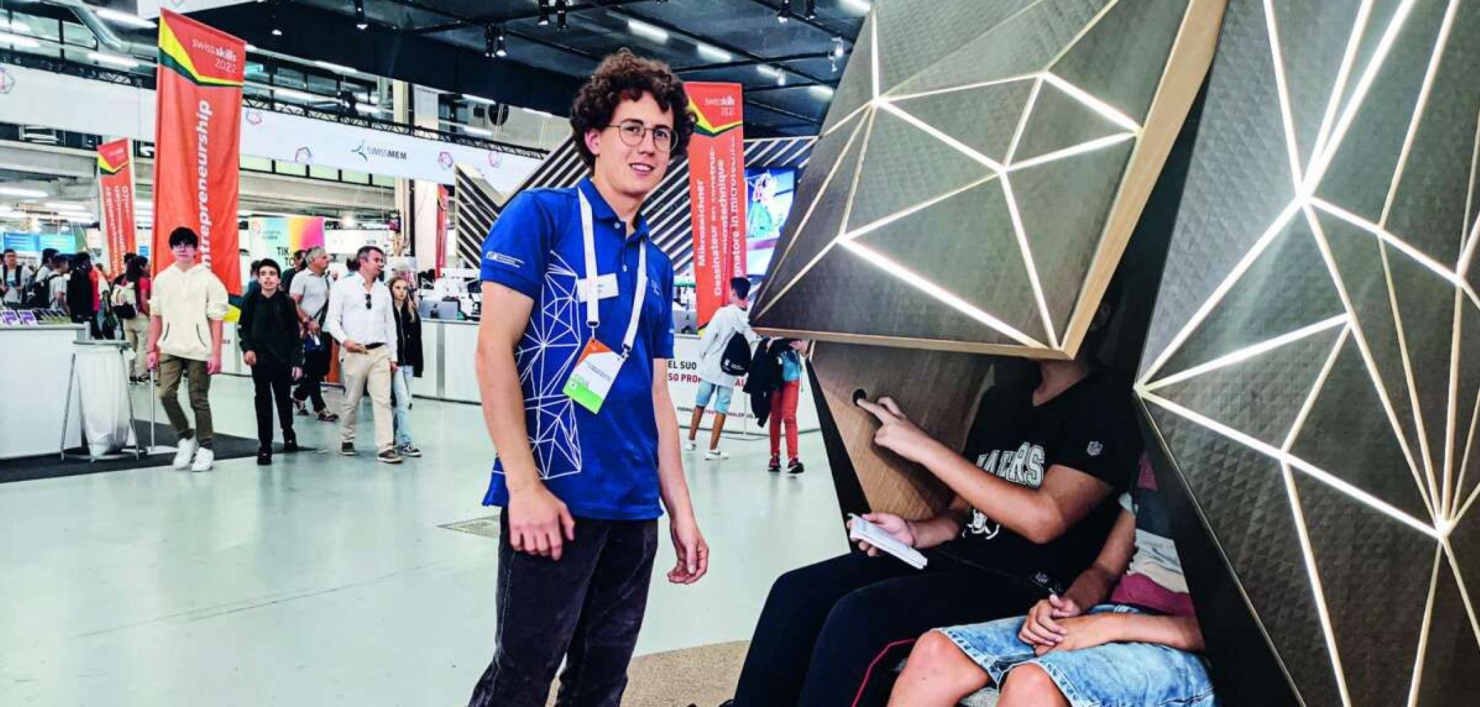 Der Lärmpegel ist hoch und die Menschen drängen sich durch die Expohallen in Bern. An den Swiss Skills Mitte September war viel los. An fünf Tagen wurden den Besuchern rund 150 Berufe präsentiert. Mittendrin natürlich auch die Schreinerinnen und Schreiner. Der Pod Chair, der futuristische Stuhl, in dem man ein Video über den Schreinerberuf schauen kann, steht ganz vorne im Stand des Verbands Schweizerischer Schreinermeister und Möbelfabrikanten (VSSM). Die Kinder und Jugendlichen sind neugierig und wollen reinsitzen. Es bildet sich teilweise eine Schlange. Sofort ist Adrian Stettler zur Stelle. Der Thuner (4. Lehrjahr, Kipfer Schreinerei) schaut beim Pod Chair zurzeit zum Rechten, zeigt den Besuchern, wie sie die Klappe schliessen können, und beantwortet Fragen.
