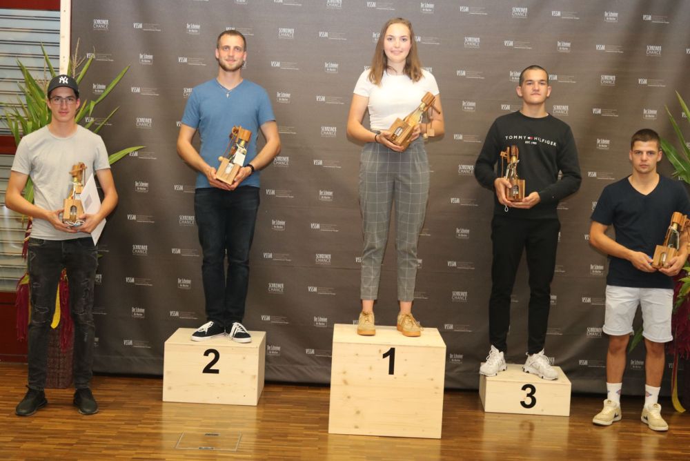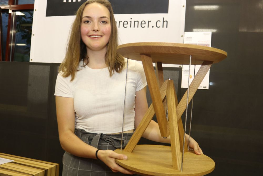 Bachmann, die ihre Lehre bei der Meier Schreinerei AG in Weinfelden absolviert, gewann den Wettbewerb mit ihrem Hocker «Flair – the flying chair». Zweiter wurde Silvan Tschopp aus Sulgen mit seiner Arbeit «Im Einklang» (Lehrbetrieb Tschopp Schreinerei AG in Kradolf-Schönenberg). Auf den dritten Platz schafft es Alex Bötschi aus Berg mit seinem Möbel «Wild recycliert» (Lehrbetrieb: Erich Keller AG in Sulgen).