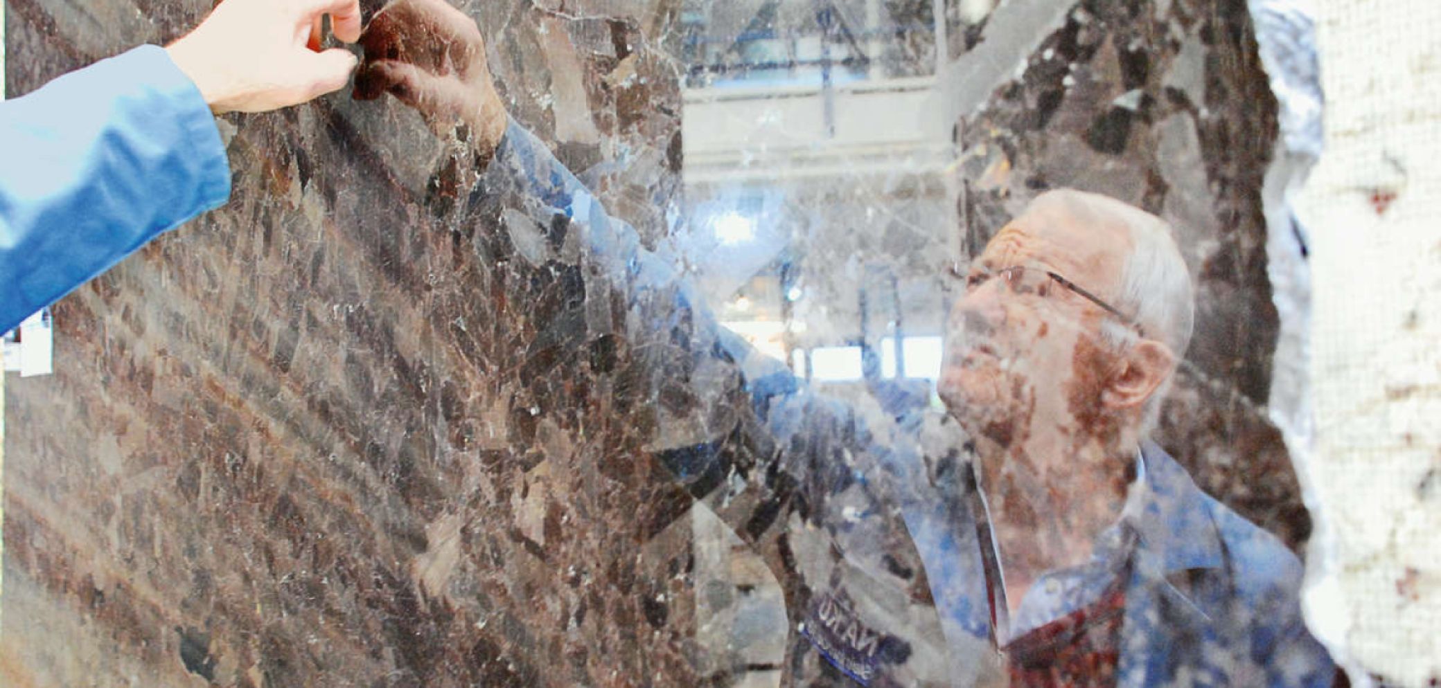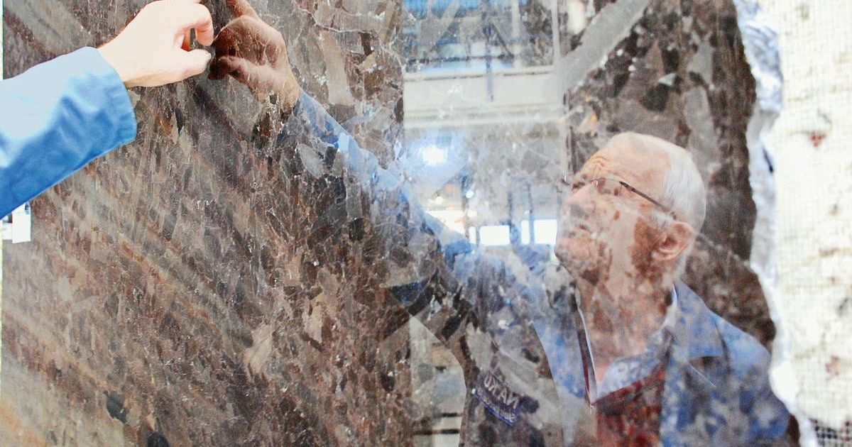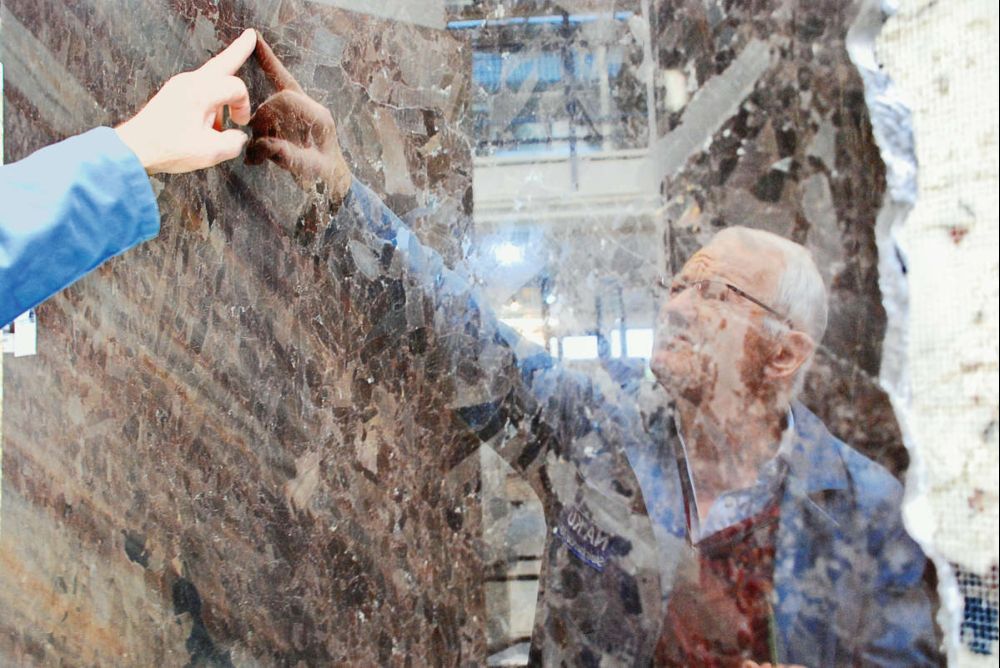 Stein ist kein homogenes Material. Sepp Wasle zeigt kleine Einschlüsse und Poren in einem Granit «Brown Antique». Bilder: SZ, Martin Freuler