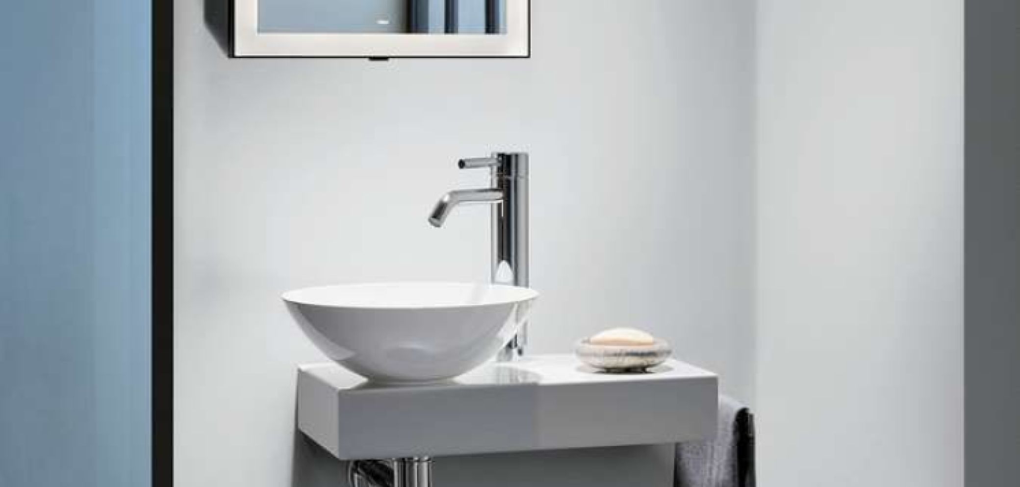 Gästebäder haben sich in den vergangenen Jahren als repräsentative Räume etabliert. Die Anforderungen an deren Gestaltung sind stetig gestiegen, so werden sie nun mit derselben Aussagekraft und Detailliebe wie andere Räume der Wohnung geplant. Die Waschplatzlösung «Piccolo» von Alape aus 3 mm dickem Stahl wurde überarbeitet, ist etwas breiter als die bisherige Lösung und bietet mehr Ablagefläche. Der Hersteller hat den Waschplatz zudem mit einem eleganten Siphon ausgestattet. Auch der Handtuchhalter wurde filigraner gestaltet – durch die optische Reduktion entsteht noch mehr Klarheit als beim Vorgänger. Die Oberflächen dieser beiden Funktionselemente sind verchromt und wurden bewusst neutral gehalten. Dies ermöglicht universelle Kombinationen mit unterschiedlichsten Raummaterialien.