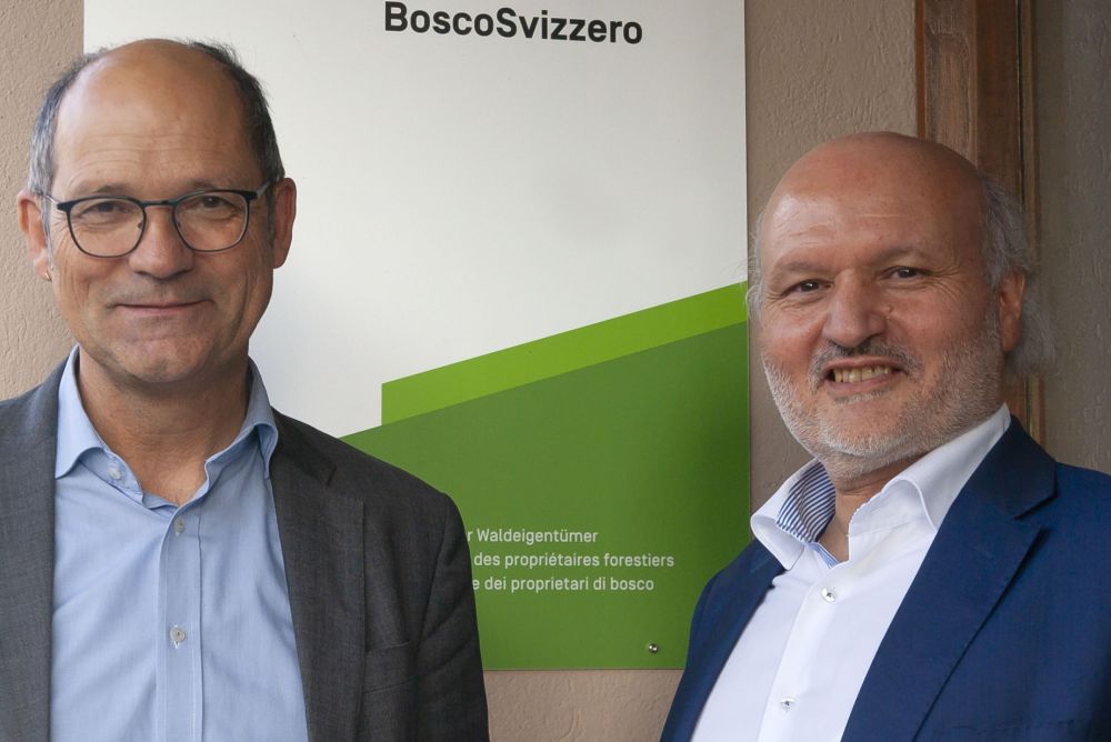 Neues Führungsduo: Präsident Wald Schweiz und Ständerat Daniel Fässler (links) mit dem frisch gewählten Direktor Thomas Troger-Bumann. Foto: Wald Schweiz