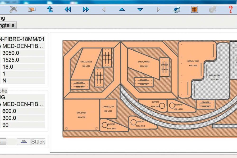 Mit der richtigen Zuschnittoptimierung spart man Material, Zeit und damit Geld – sowohl im Zuschnitt als auch beim Nesting. Umso wichtiger ist es, dass die Optimierungssoftware immer aktuell ist und stets die besten Features bietet. So bietet Holzma für die Version «10» der Optimierungssoftware «Schnitt Profi(t)», die im Herbst des letzten Jahres erschien, bereits wieder einige neue Funktionen, die die tägliche Arbeit weiter verbessern sollen. Darunter befinden sich vor allem Neuerungen für die Arbeit auf Nesting-Maschinen: Über den CNC-/Nesting-Editor lassen sich Schnittpläne oder Bauteile nachbearbeiten. Hier wurde die Navigation verbessert, damit die Programmierung in Zukunft noch leichter fällt. Bei der Erkennung der Restteile wurden die Berechnungen dahingehend verbessert, dass die Menge des Abfalls sinkt. Das Werkzeug kann neu während des gesamten Aufteilprozesses im Material verbleiben. Aneinander angrenzende Teile können mit einer einzigen Fräsung direkt getrennt werden. Für besonders dünne, schmale oder kleine Bauteile gibt es den Schnittplan «Stege». Das Programm kann nun .mpr(x)-Daten verarbeiten und ist damit bereit für die Anbindung an «woodWOP 7», die neueste CNC-Programmiersoftware der Homag Group. Es lassen sich nun 2D-Codes (Pixelcodes) auf dem Etikett aufdrucken und in den «Übersichtslisten» können auch Durchschnittswerte angezeigt werden.