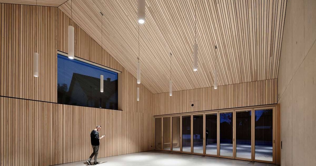 Der Veranstaltungs-saal besticht durch das Zusammenspiel von Schrägen und Geradlinigkeit. Bild: Faruk Pinjo