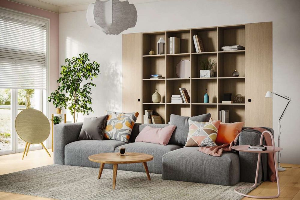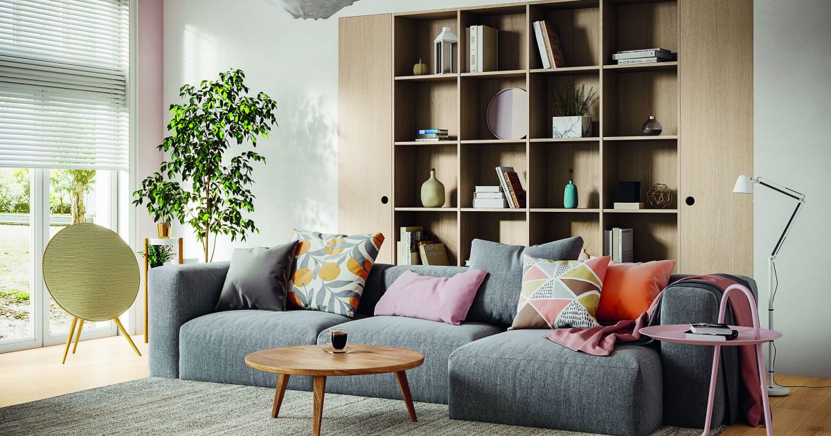 Hingucker: Wohnzimmerwand aus Shinnoki-Furnierplatten. Bild: Kuratle & Jaecker