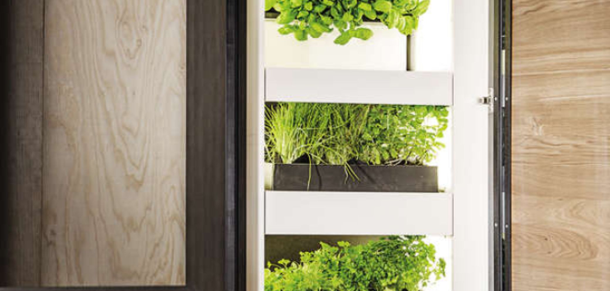 Besonders auffällig ist bei «Vooking» sicher das sogenannte «Farming-Unit». «Frische Kräuter und Gewürze oder sogar Nutzpflanzen selber ernten, ist für viele in urbaner Umgebung ein Traum», weiss Zeppetzauer. Die «Farming-Unit» in Form eines Wachstumsschrankes ist mit Pflanzen-LEDs und einem Lüftungssystem ausgestattet. Optional kann auch ein Bewässerungssystem integriert werden. Es können bis zu vier verschiedene Klimabereiche im Schrank nachgestellt werden, für die ein Gärtner die jeweilig geeigneten Pflanzen in vier Gruppen eingeteilt hat. Beim Öffnen der Tür wechselt das Wachstumslicht automatisch in ein Weisslicht, das die selektive Ernte der Pflanzen und Kräuter ermöglicht. So hat der Koch ganzjährig frische Kräuter zur Verfügung – auch ohne Garten.