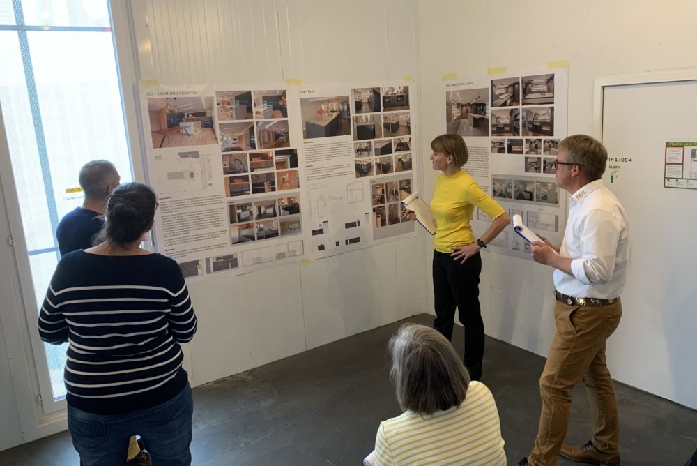 Die Fachjury des Swiss Kitchen Award 2021 begutachtet die Projekte (v.l.): Michel Hueter, Michèle Meier, Christine Vollmer, Ursula Hürzeler (Präsidentin) und Urs Itel. Bild: PD