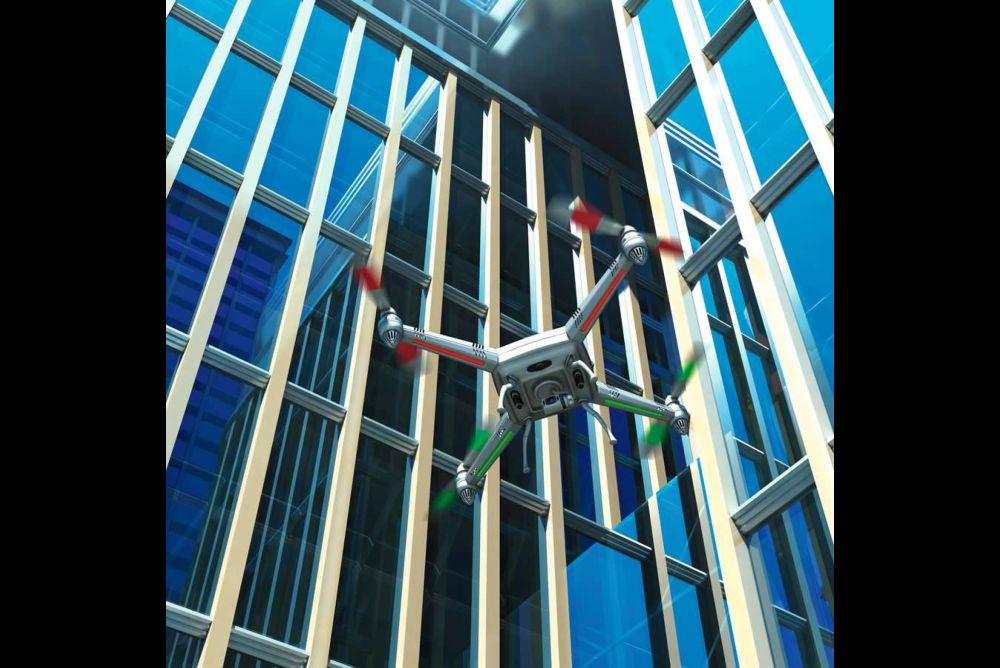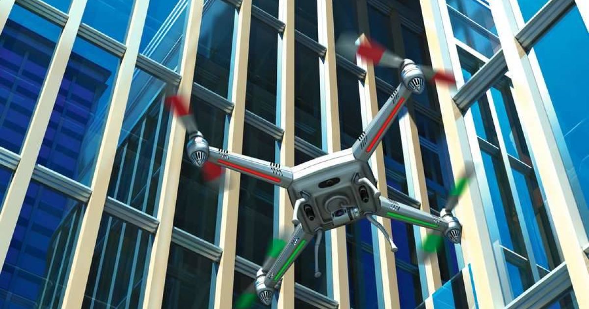 Entspricht noch selten der Realität: Bislang finden Drohnen zur Inspektion von Glasfassaden kaum Einsatz. Bild: Wir0man (iStock)